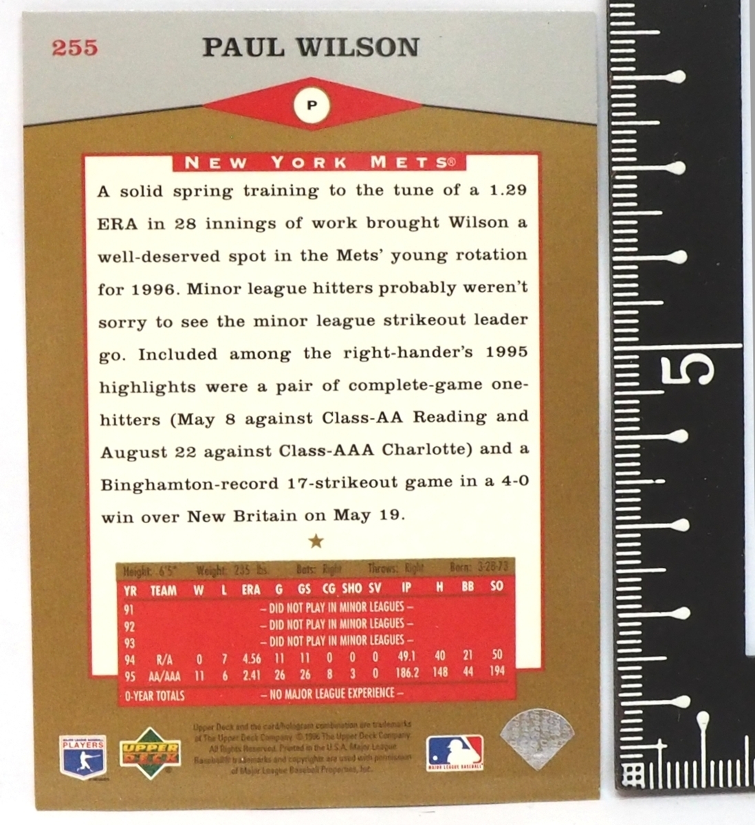1996 Upper Deck #255 Star Rookie【Paul Wilson(Mets)】96年MLBメジャーリーグ野球カードBaseball CARDアッパーデック ベースボール