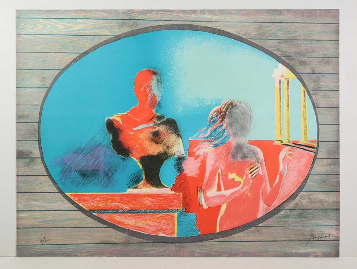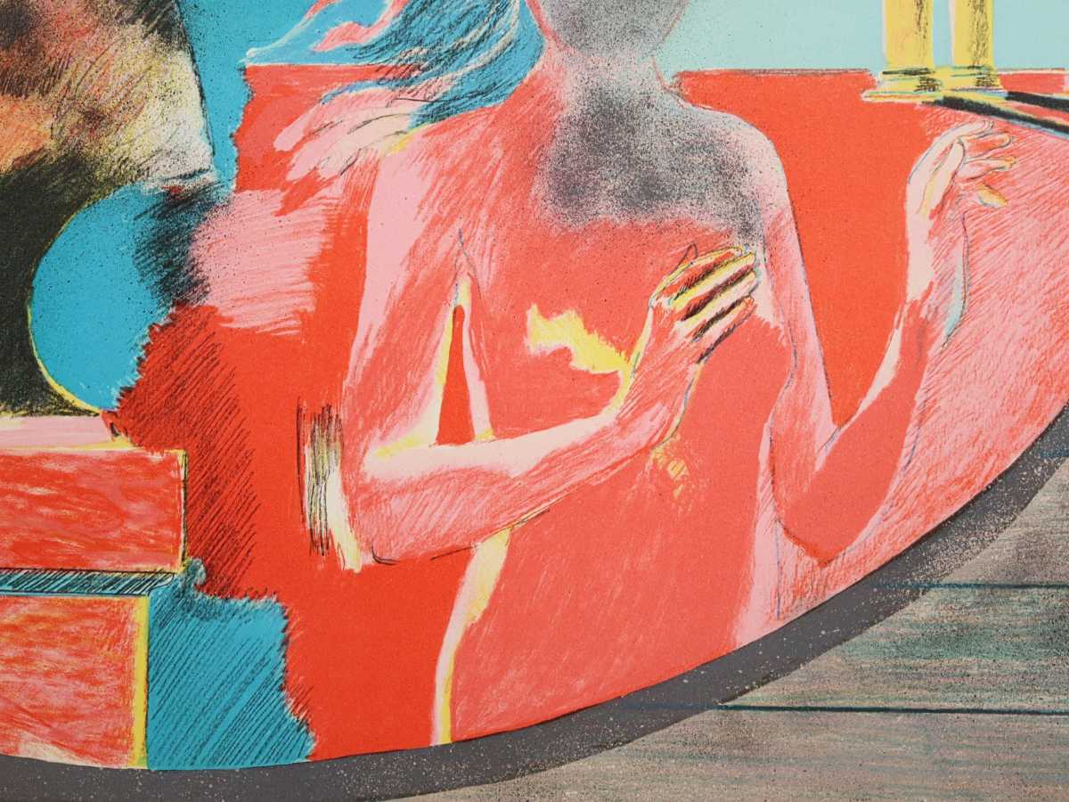 真作 ポール・ギヤマン 大判リトグラフ「アンティークな赤」画寸 77cm×60.5cm 仏人作家 官能的な赤を主体 鮮やかな色彩 ギアマン 6677