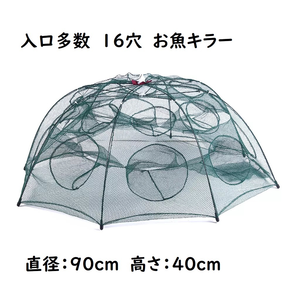 お魚キラー 16穴タイプ 八つ手 コンパクトに持ち運べる 折り畳み式 エビ カニ 小魚 漁具 魚捕り 漁具 ケージ 罠 タコ 八角網