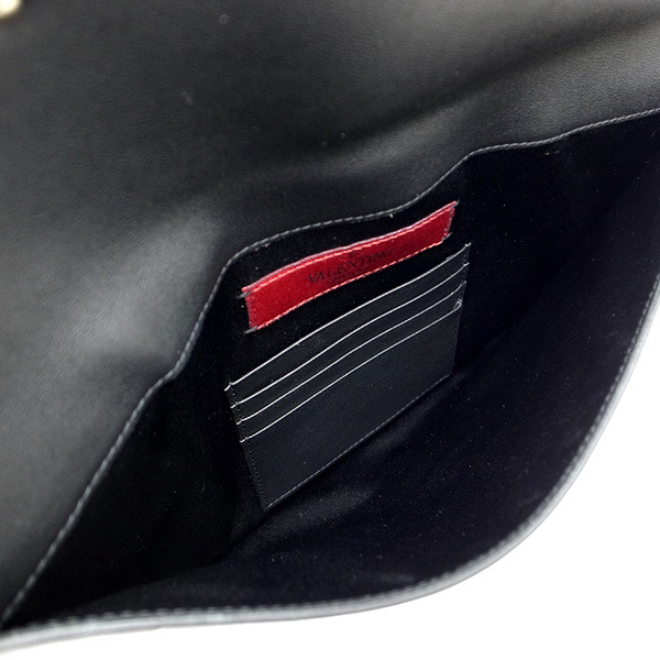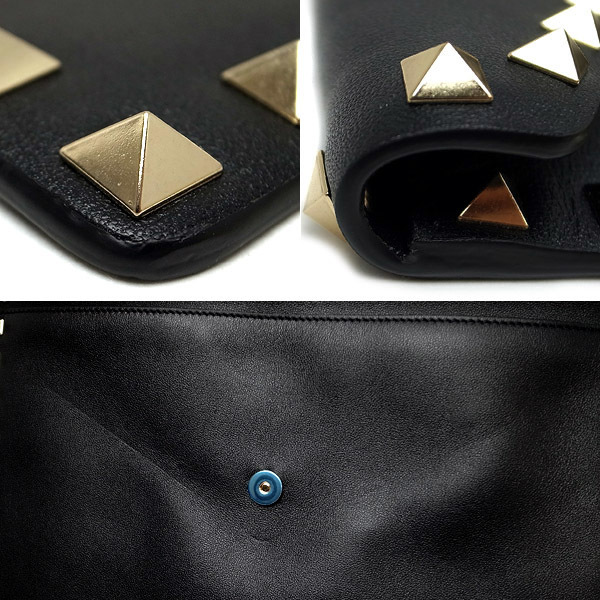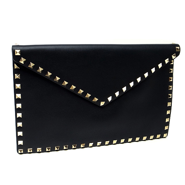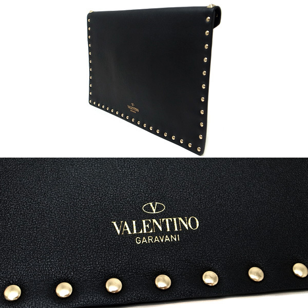 【緑屋質屋】Valentino(ヴァレンチノ) ロックスタッズ クラッチバッグ(フラットポーチ) レザー/ブラック【中古】