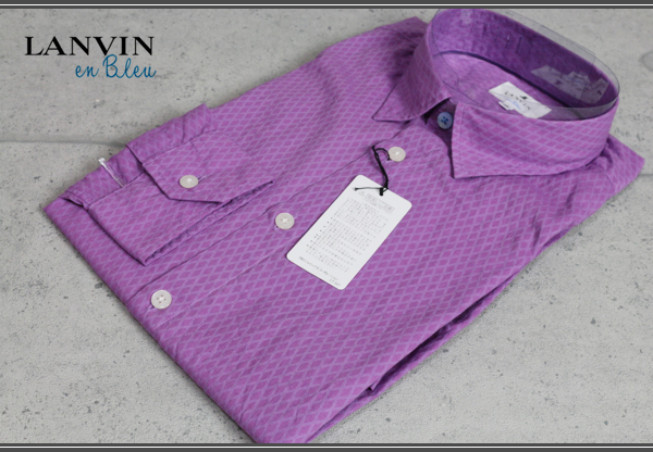 新品ランバン オン ブルー濃染長袖ロールアップシャツ50XL紫2