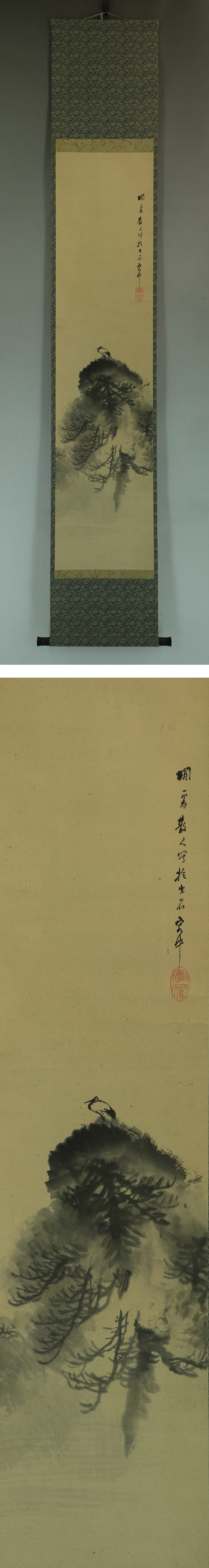 | №2211042【模写】橋本関雪【松上鶴】◆紙本◆合箱◆掛軸 | |
