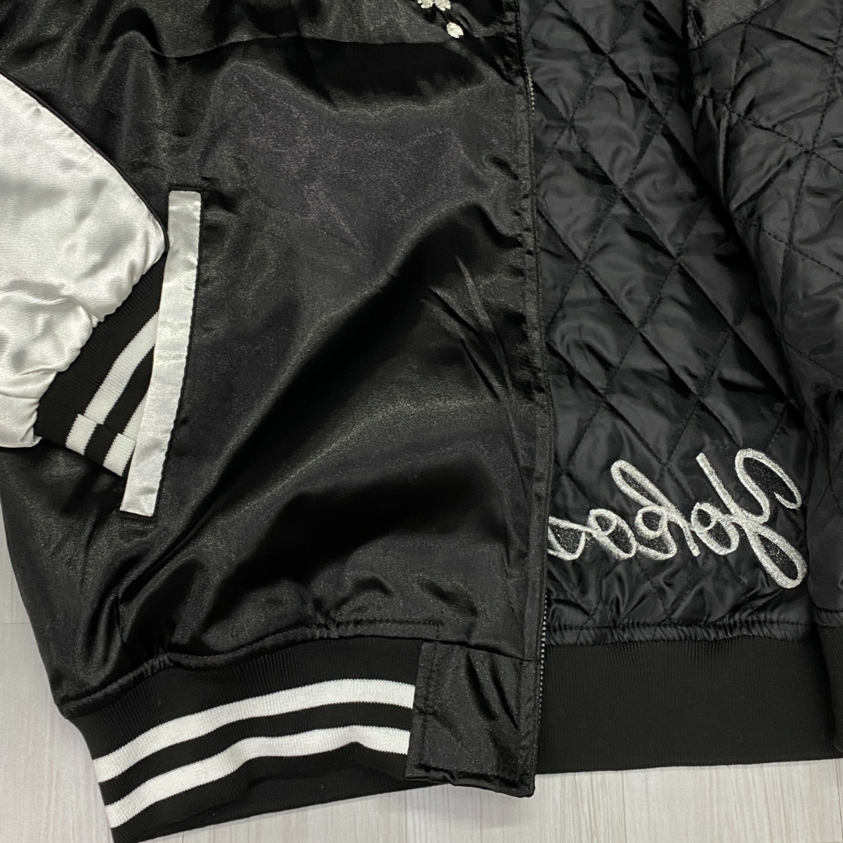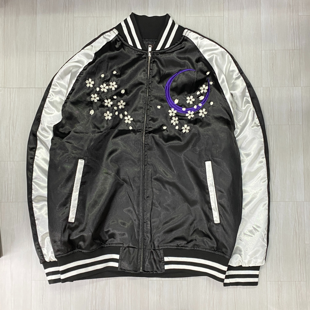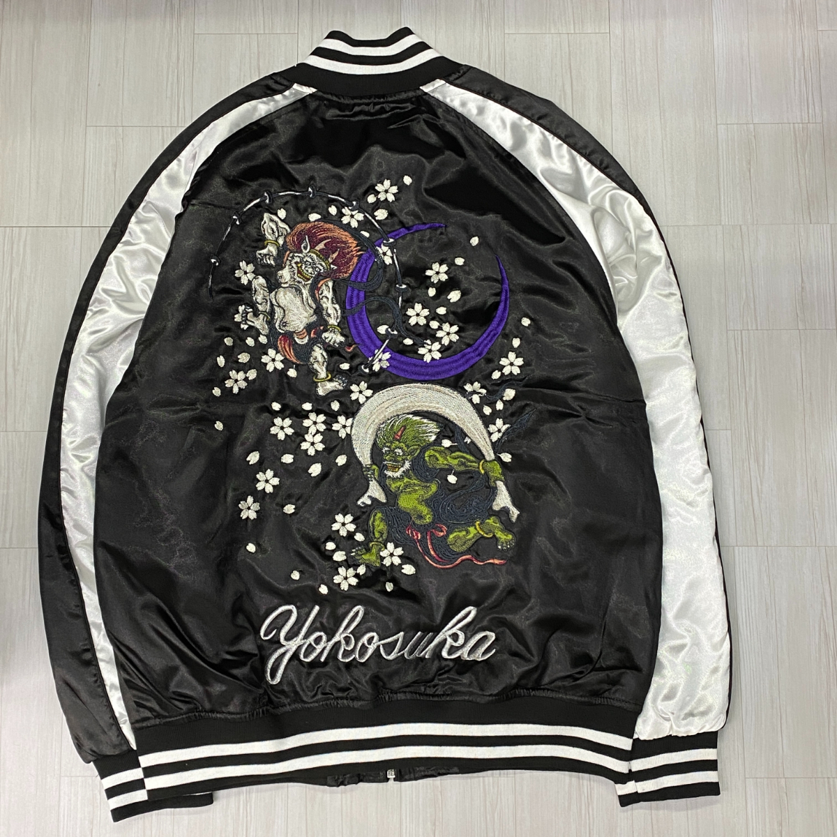 特別価格 【M】 中綿入り 横須賀発祥 スカジャンYokosuka刺繍 SUKAJAN 総刺繍 RAIJIN 風神雷神 PUFF 内ポケット 黒 ブラック 桜吹雪