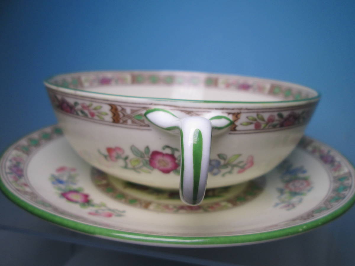 ☆Wedgwood 廃版品 ウエッジウッド B IDEFORD 手描き花鳥文スープカップ&ソーサー ヴィンテージ