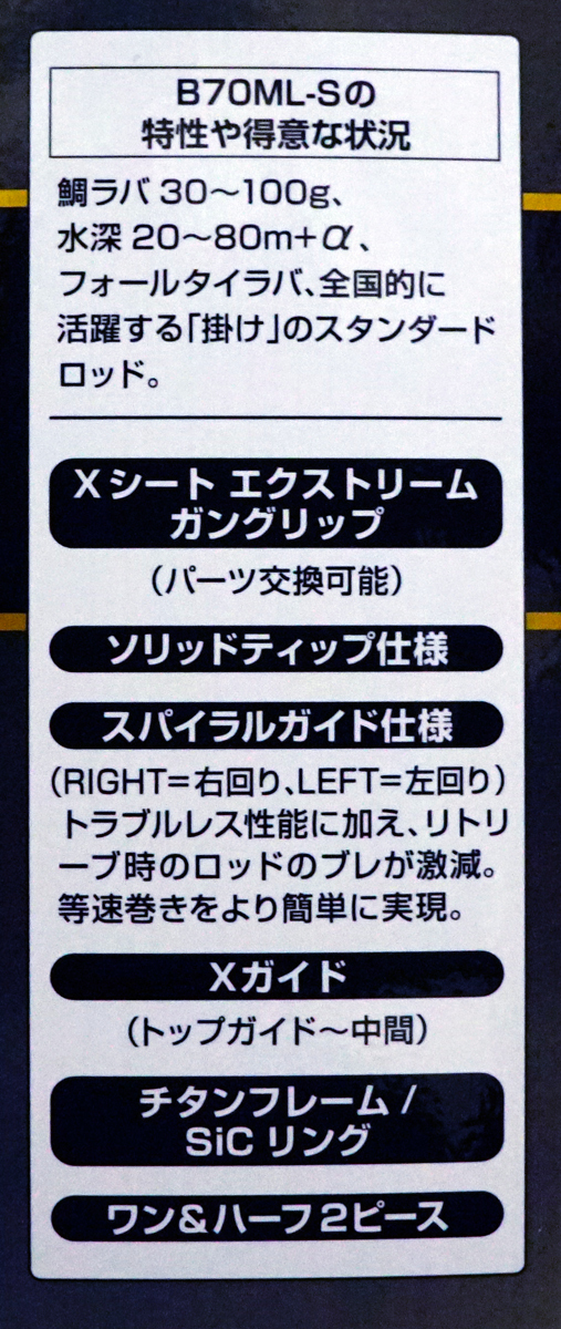 70ML-Sは鯛ラバ30~100g、水深20~80m+αに適応し、