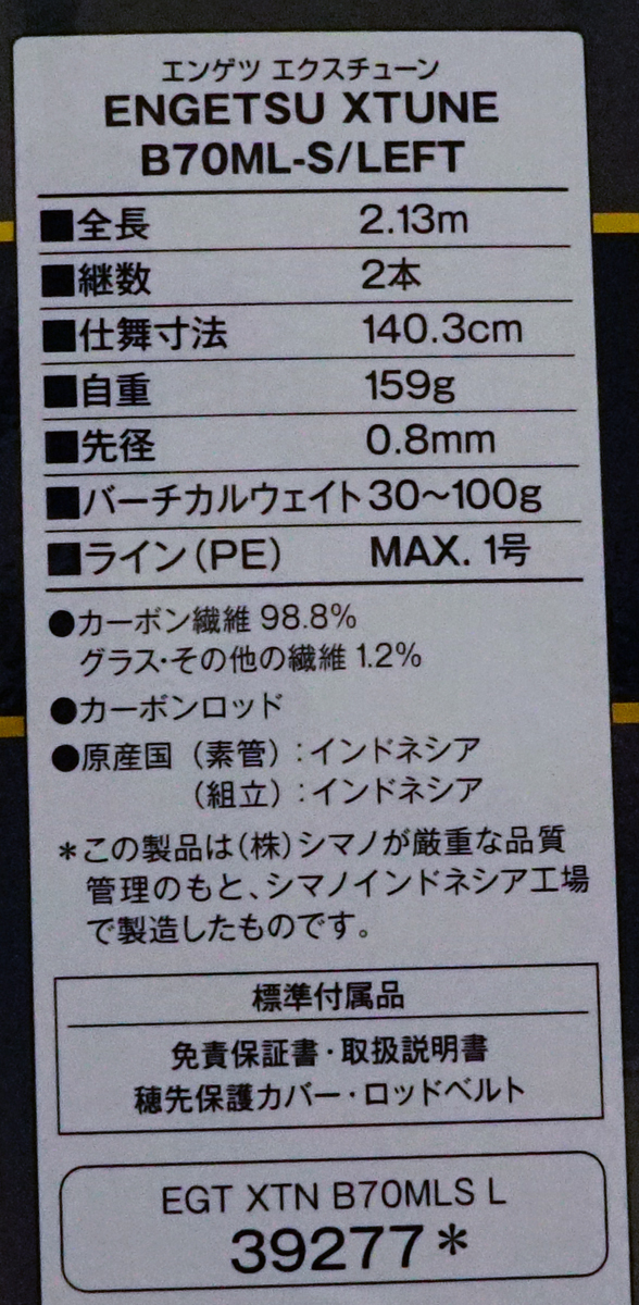 シマノ 炎月 エクスチューンENGETSU XTUNE B70ML-S/LEFT