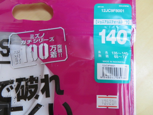 品番:12JC9F8001 カラー:ホワイト サイズ:140(JASPO) 身長:135~145cm 胸囲:65~72cm 後丈:65cm・胸回り:90cm 肩幅:38cm・袖 丈:14cm 素材:ポリエステル100% 原産国:インドネシア製 価格:\3,520円(本体価格\3,200円) | |||