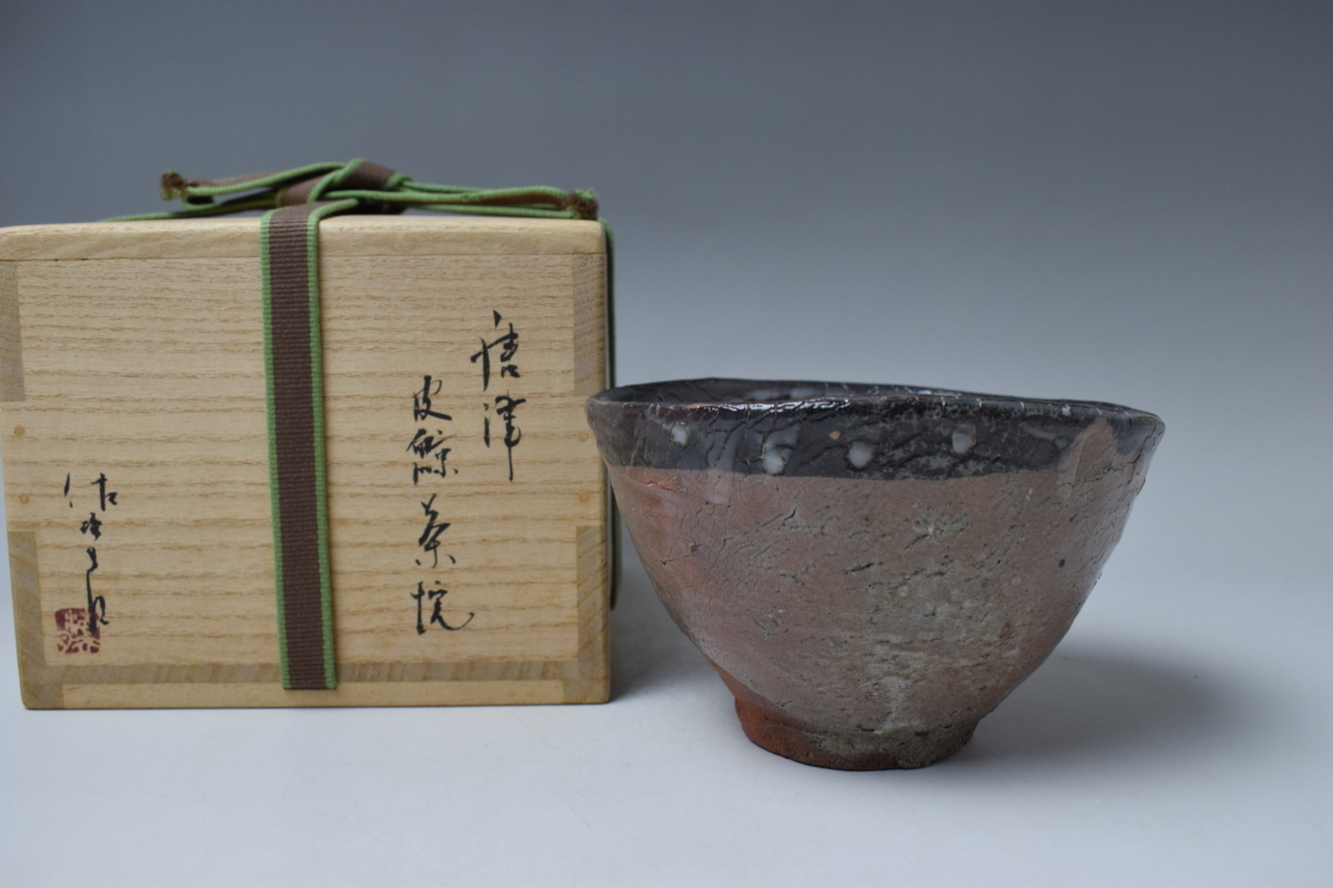 【田中佐次郎 唐津皮鯨茶碗 共箱 真作保証】