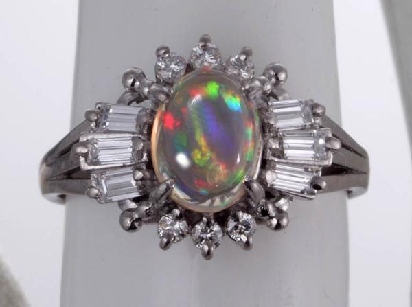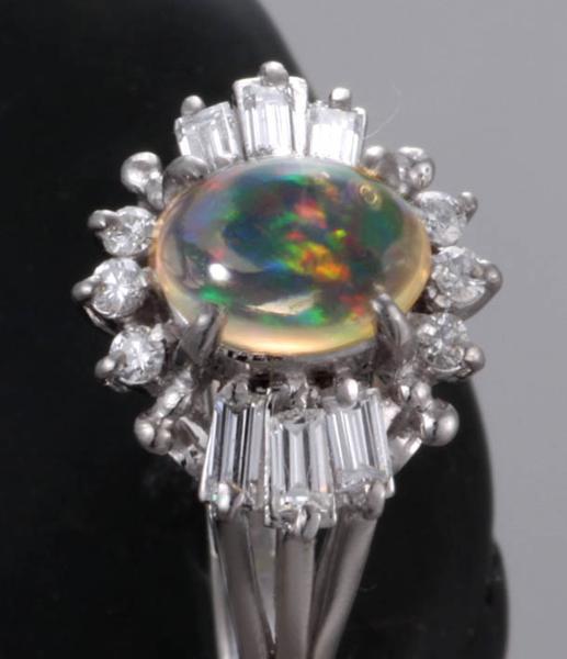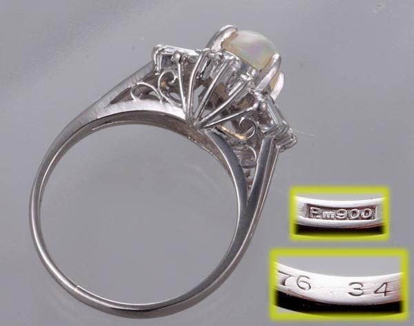 | マテリアル | 天然オパール0.76カラット(カラット刻印あり)、天然ダイア合計0.34カラット(カラット刻印あり)、プラチナ900製(Pm900の刻印) |