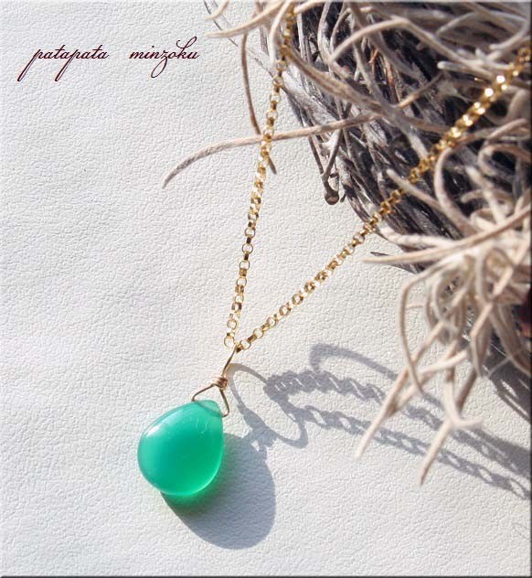 グリーン オニキス ネックレス 14kgf 14k ゴールド ペンダント 天然石 パワーストーン
