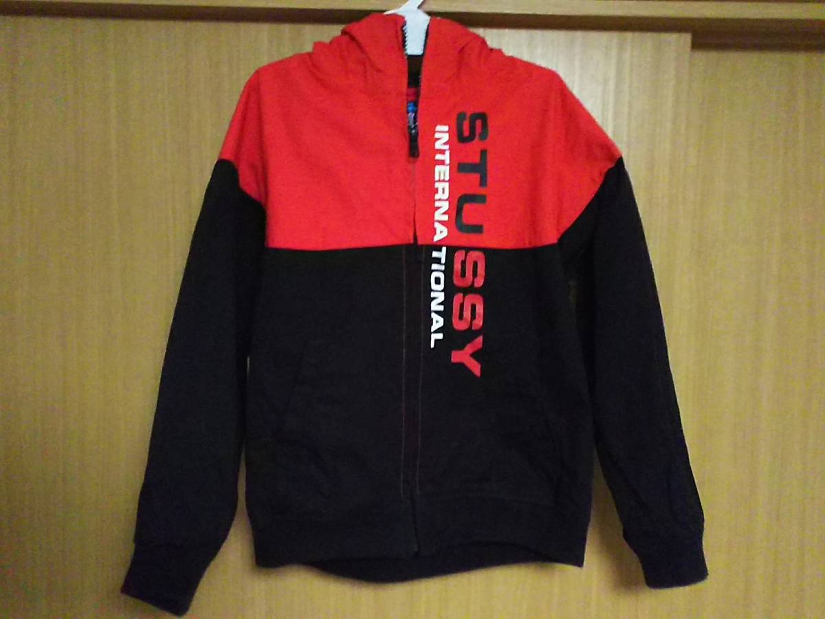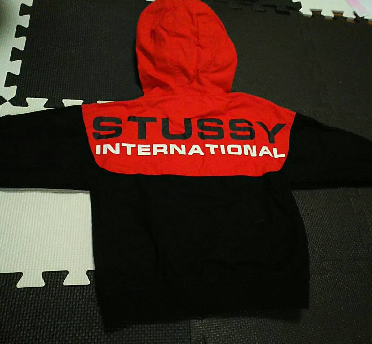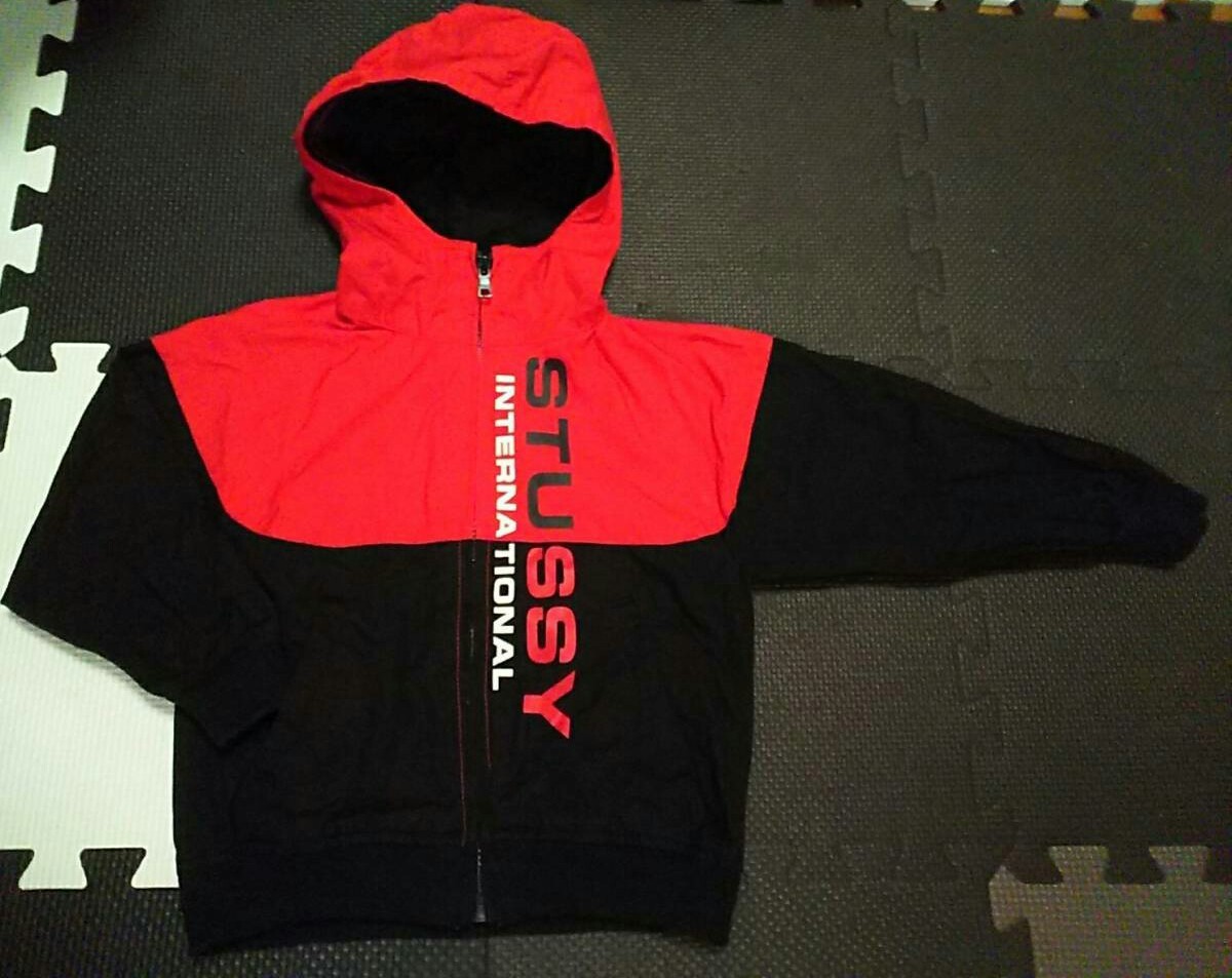 ステューシーM/110サイズSTUSSYステューシーINTERNATIONAL赤ブルゾン黒パーカー綿100%レッドREDブラックBLACKキッズ子供こども100cm110cm120cm5Tウインドブレーカー