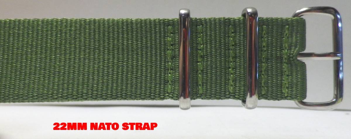 タイトル | 22MM NATO ミリタリー ナイロンベルト新品 アーミー・グリーン NATO型尾錠 肉厚 LONG |