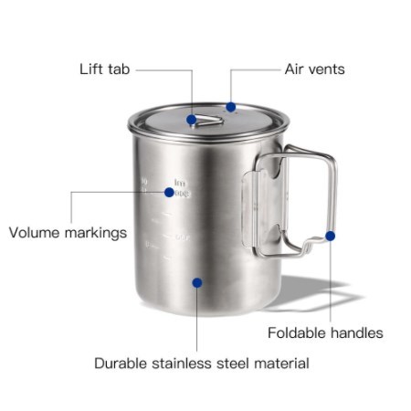 ボリュームマーキング、折りたたみ式グリップハンドル、リフトタブ付き蓋、ワイヤーベイルが特徴です。