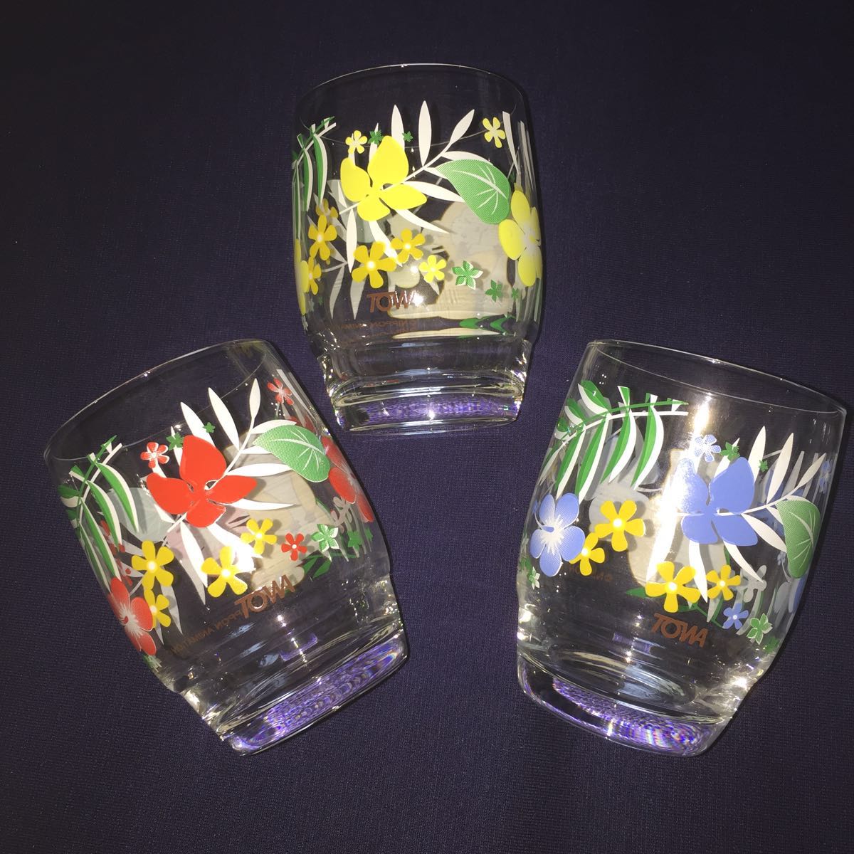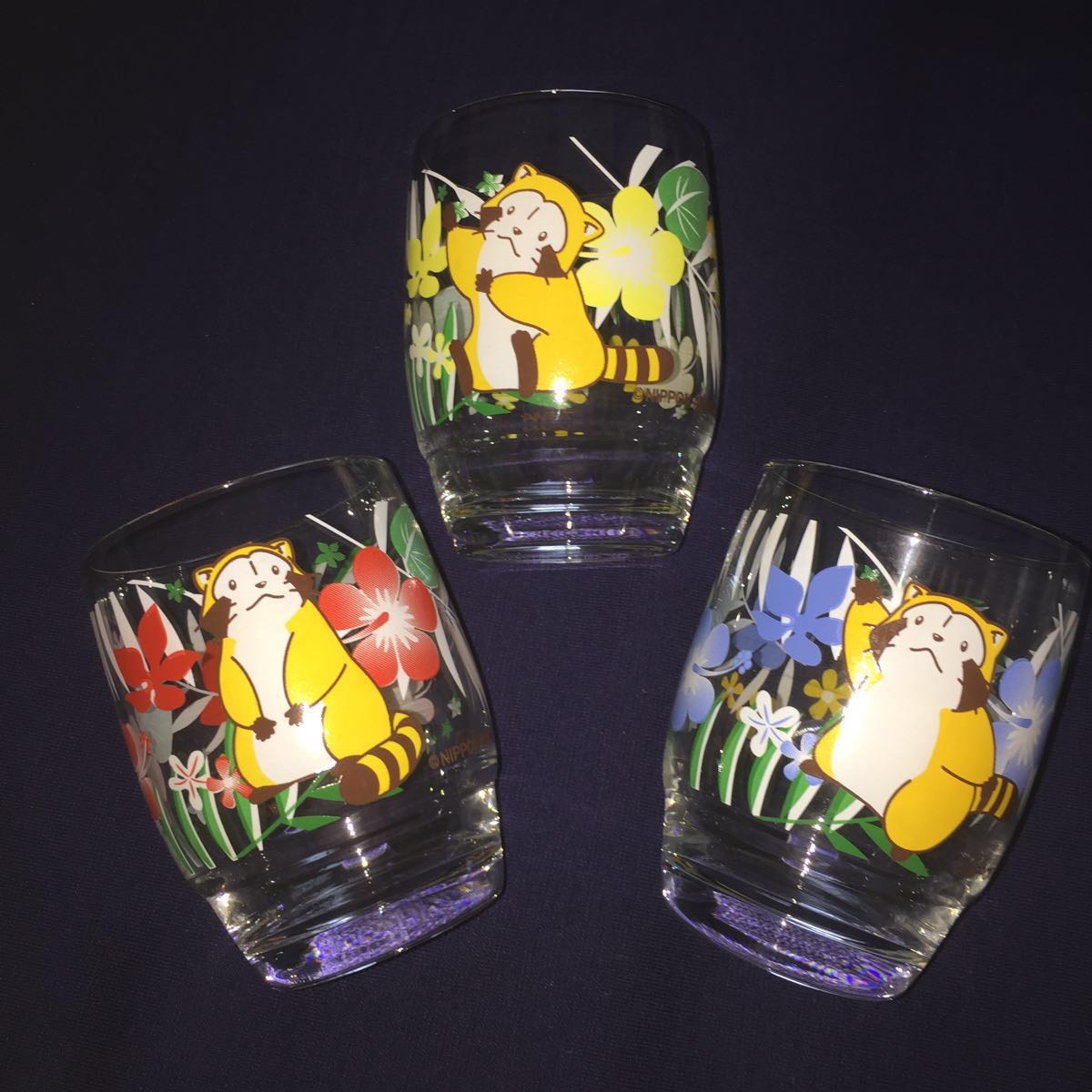 レア非売品 あらいぐまラスカル ハイビスカス柄グラス タンブラー3色セット です。