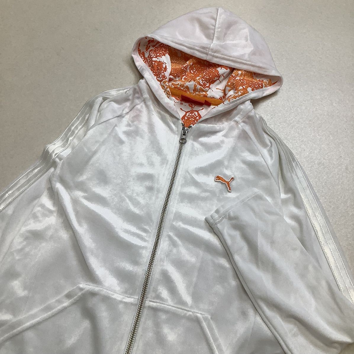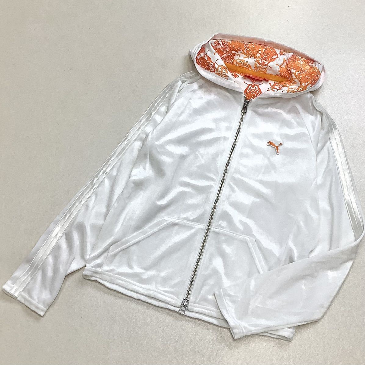 極美品 PUMA プーマ フルジップ ジャージ パーカー レディース Mサイズ ホワイト オレンジ アウトドア スポーツ ジム