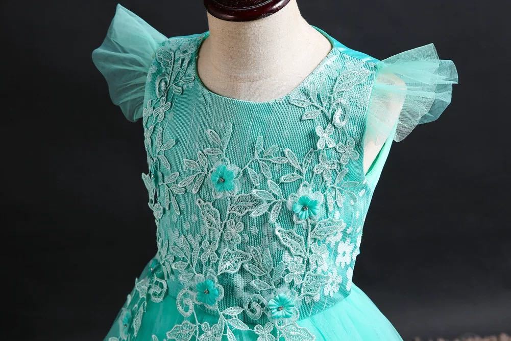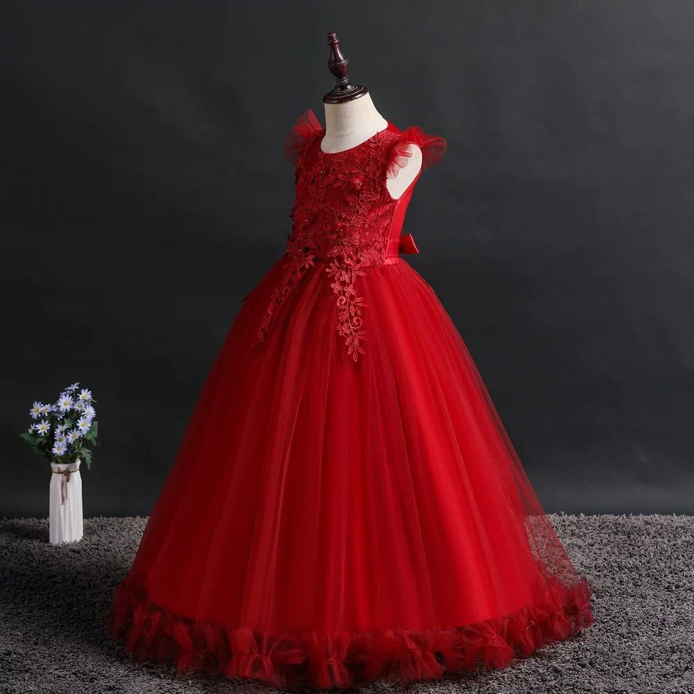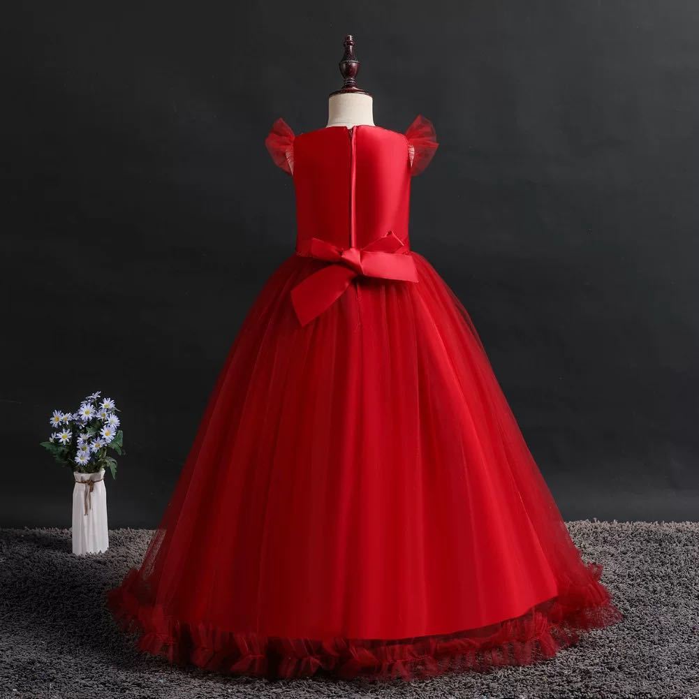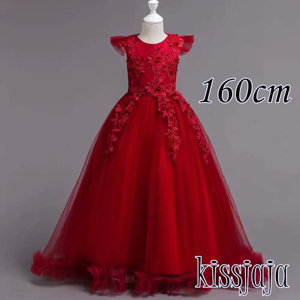 可愛い刺繍キッズドレスです。結婚式、誕生日、七五三の他、バイオリン発表会、ピアノ発表会、エレクトーン発表会などにもぴったりです。鮮やかなブレッドのロングドレス、ふんわりして可愛いです。