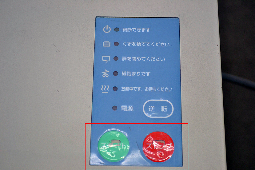 | ■動作確認/商品状態 | B5-A3までの普通紙を100枚程度連続で裁断の確認を行いました。スタート、逆転ボタン、ストップボタンの動作の確認も行いました。 問題なく裁断されており、正常動作品です。 外観など、クリーニングして発送いたします。(中古品の為、落ちない汚れ、擦り傷、塗装はがれ、黄ばみ等はご容赦ください。) 内部清掃済み。 |