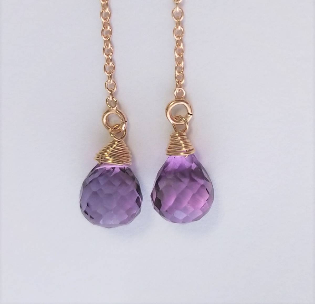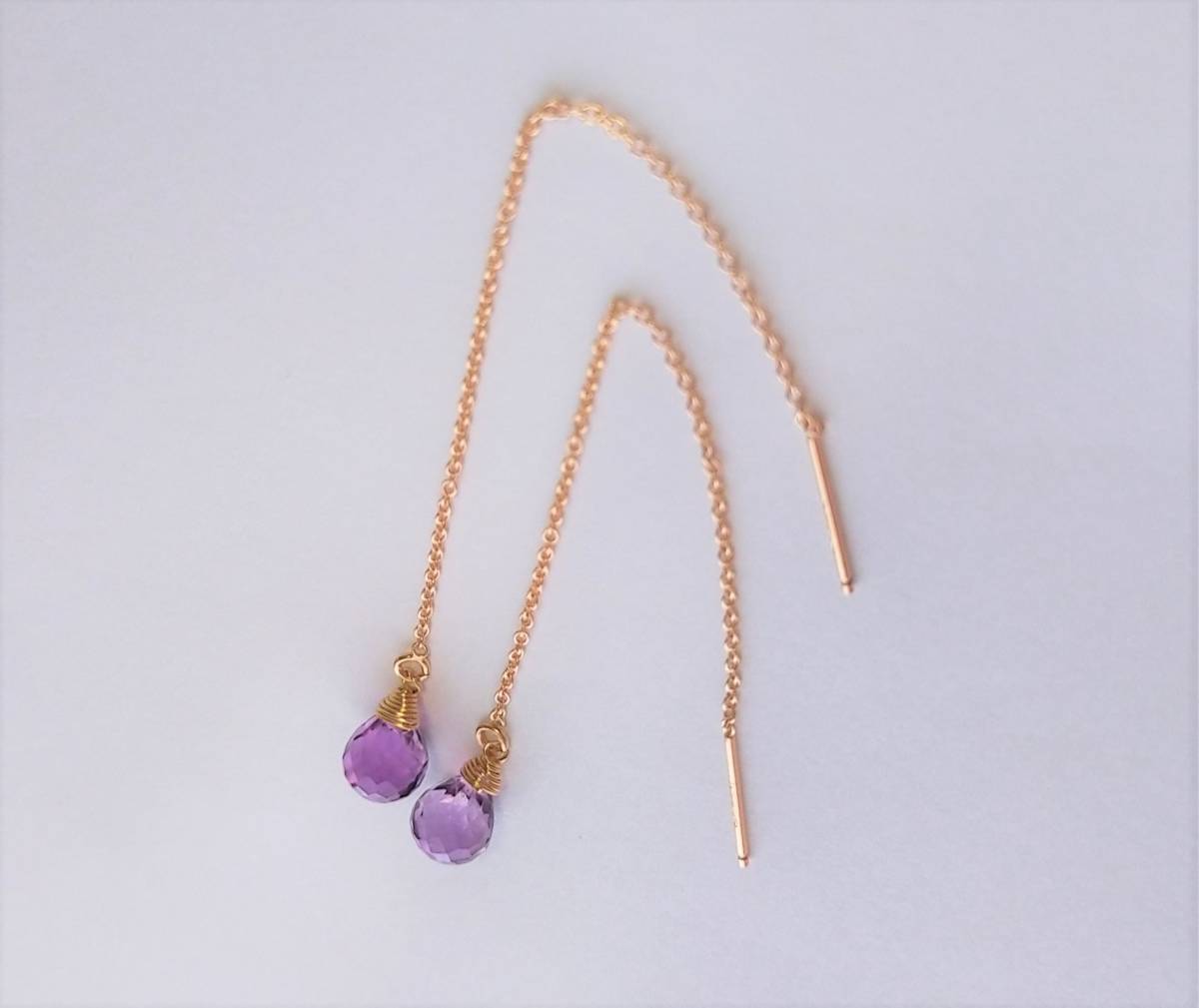 ※商品はアメジスト ドロップ チェーンピアス (両耳)のみです。