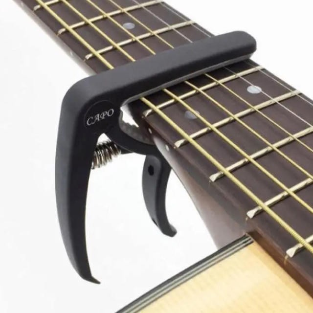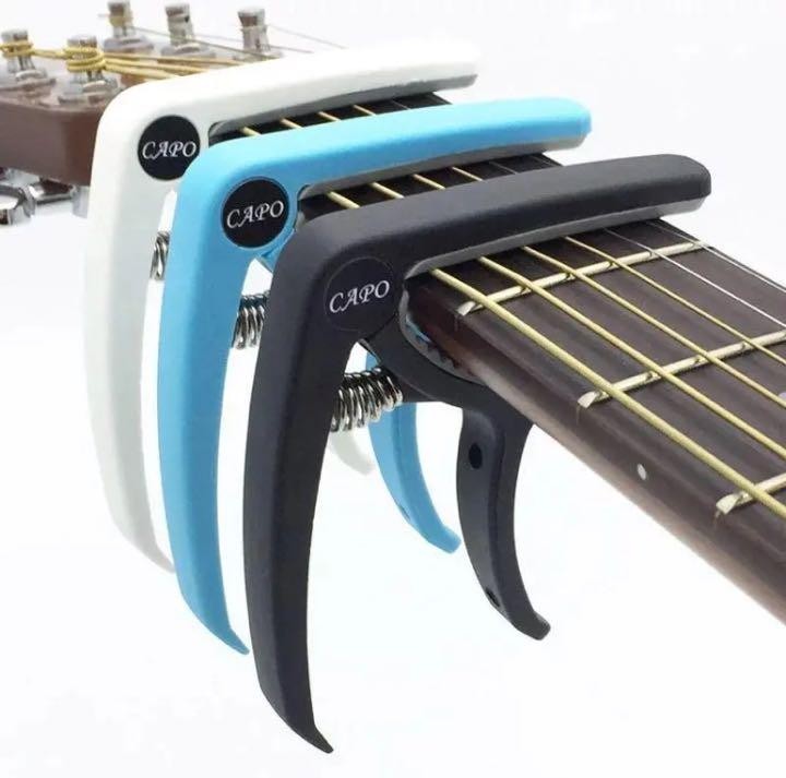 エレキギター・アコースティックギター・フォークギターなど様々なギターに使用出来る、バネ式のカポタストです。
