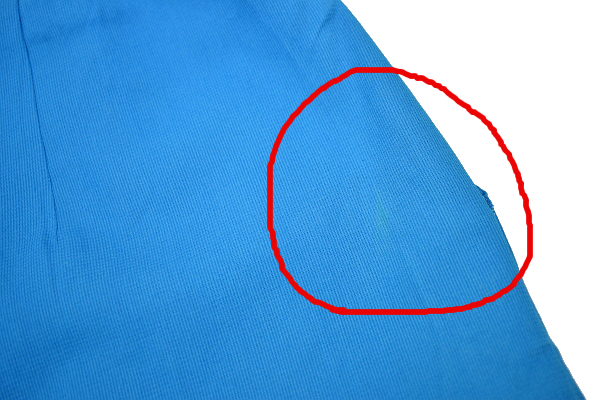 全体的に綺麗かと思いますが、目を凝らして見ますと・・わずかに右ヒップや前両裾、左フロントポケット口などにうっすら汚れの様なものが見られますが、肉眼ではよく見ないととわからない程度でまだまだご活躍いただけるかと思います。