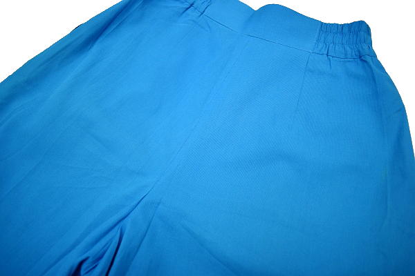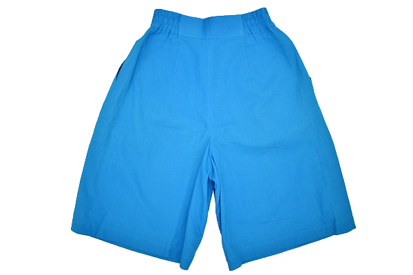 ブルーカラー 裏地あり 両フロントポケット刺繍あり 後ろ両サイドウエストシャーリング 薄地 春夏秋向き ハーフ ショートパンツ