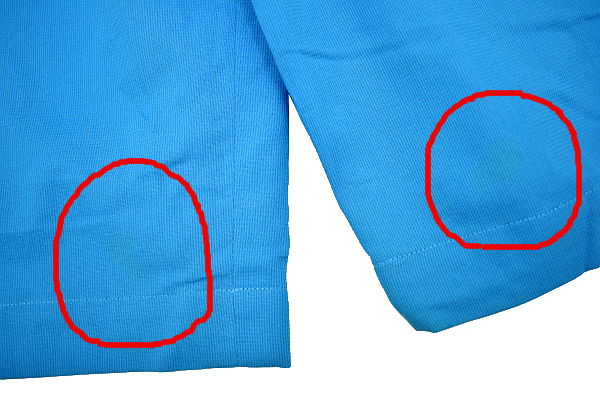 ※最近では、ユーズド加工の商品なども多数あり、判別できない事が多いので、誤解を避けるため、当方では、色落ちや、全体の色褪せは、ダメージとして記載しておりません。