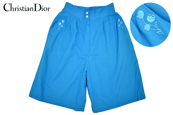 M-1205★送料無料★Christian Dior SPORTS クリスチャンディオール スポーツ★通年 春夏秋 薄地 ブルー青色 刺繍 ハーフ ショートパンツ M