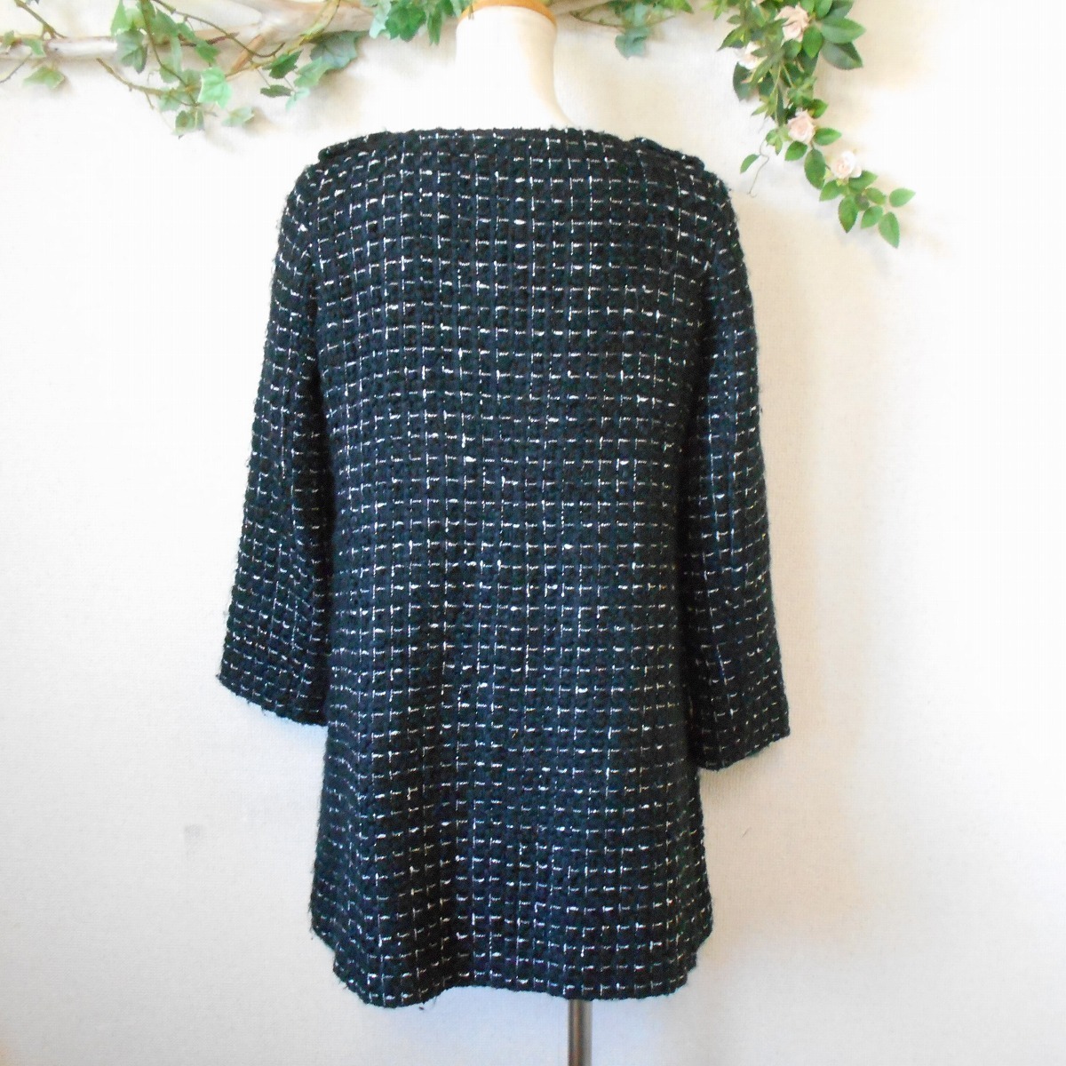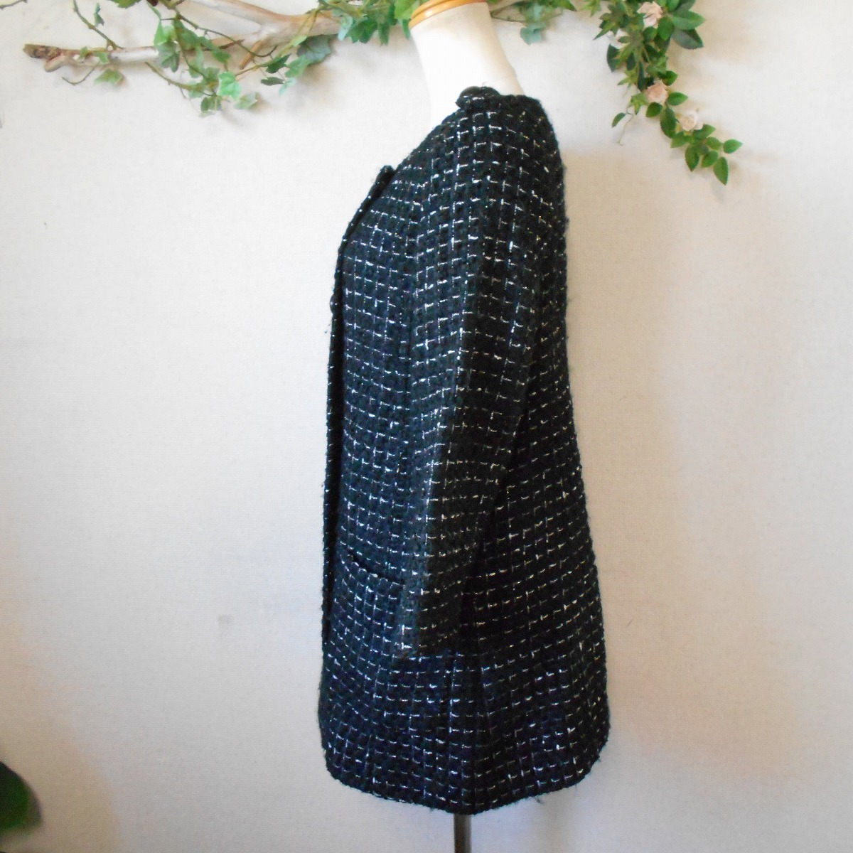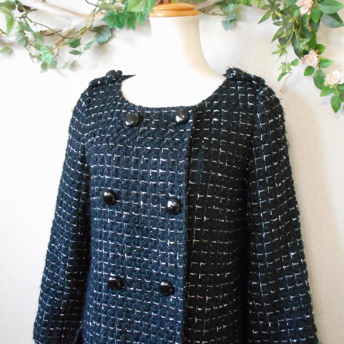 【ポイント】ジルスチュアートのレディース用コートになります。お色は黒色ベースで、柄部分は金ラメ、白、等の糸が使用されています。