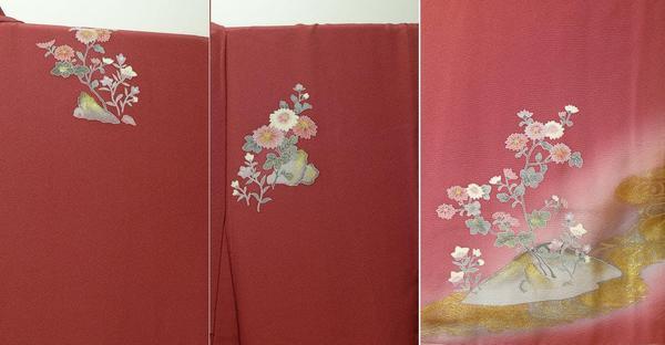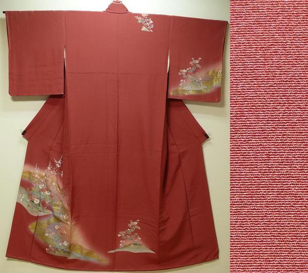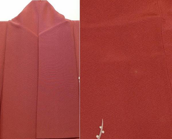 素材:正絹。広襟身丈159cm、裄64cm、袖幅32.5cm、袖丈49.5cm、前幅24cm、後幅29.5cm。丈約8cm伸びます。仕付け糸がついています。前左身頃の腰あたりに写真のように5mmほどの薄いしみがあります。左襟に1cmと5mmの薄いしみがあります。前右身頃の腰あたりに5mmの薄いしみと膝あたりに5mmの薄いしみがあります。アンティーク着物をご理解のかたでしたら十分着用可能な範囲かと思います。携帯からは運賃等の確認のお取引内容がご確認出来ない事がございますので必ずパソコン画面でご覧下さい。