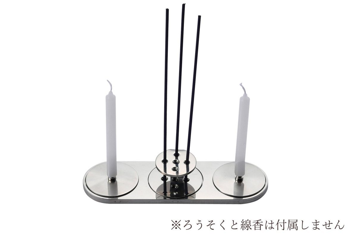 【サイズ約(mm)】 下台:高さ29 幅137 奥行43 線香立て:高さ21 幅40 奥行40 ろうそく立て:高さ26 幅39 奥行39 |
