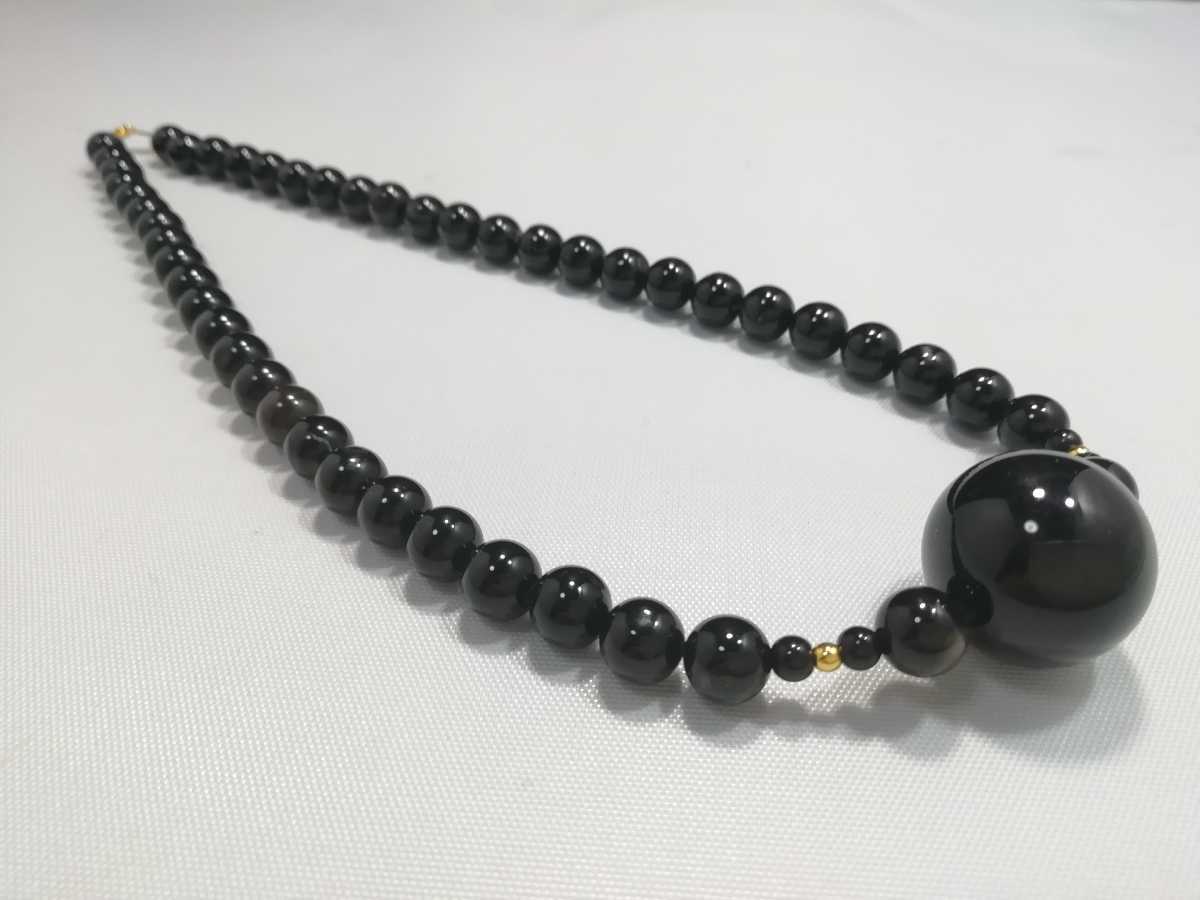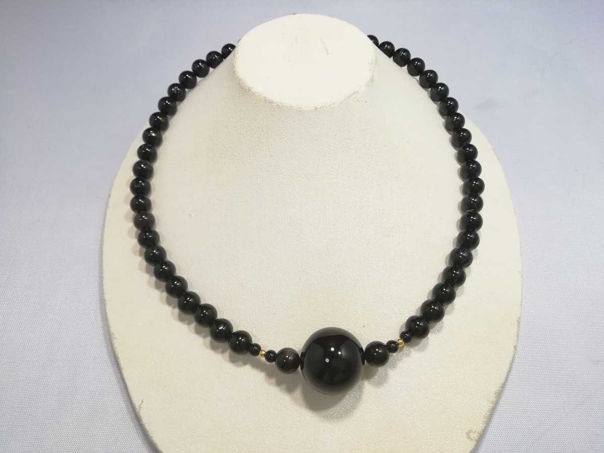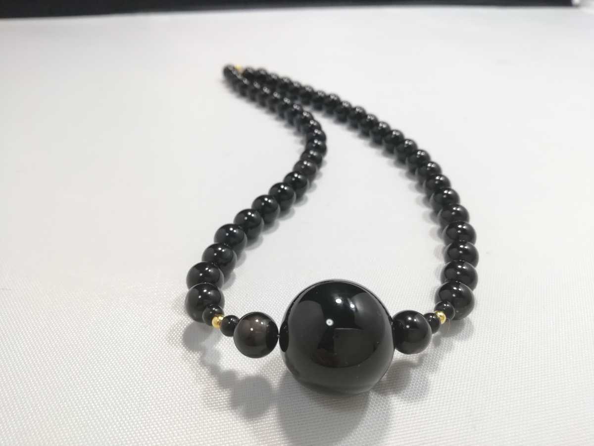 天然オニキス丸玉ワンポイントペンダントデザインネックレス