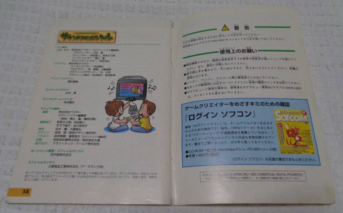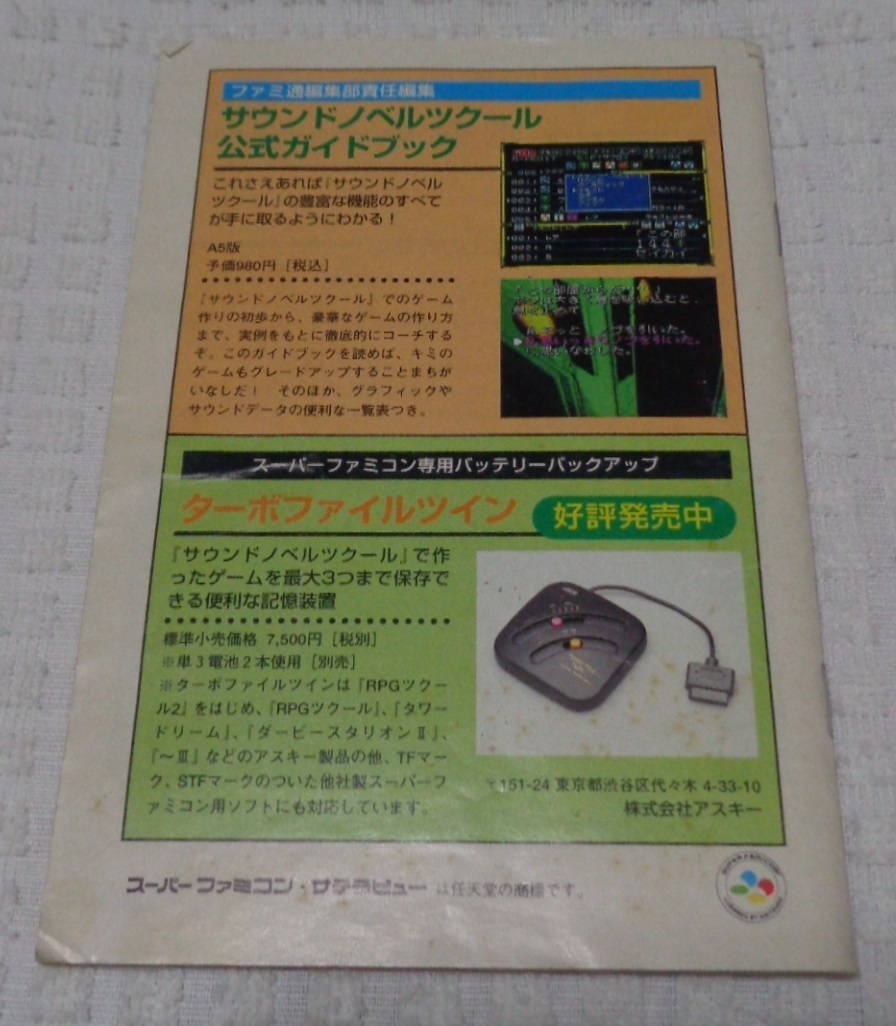 ★レトロ☆GAME★珍品「[送料430円 取説のみ] SFC サウンドノベル ツクール 取り扱い説明書のみ」スーファミ スーパーファミコン 現状渡し