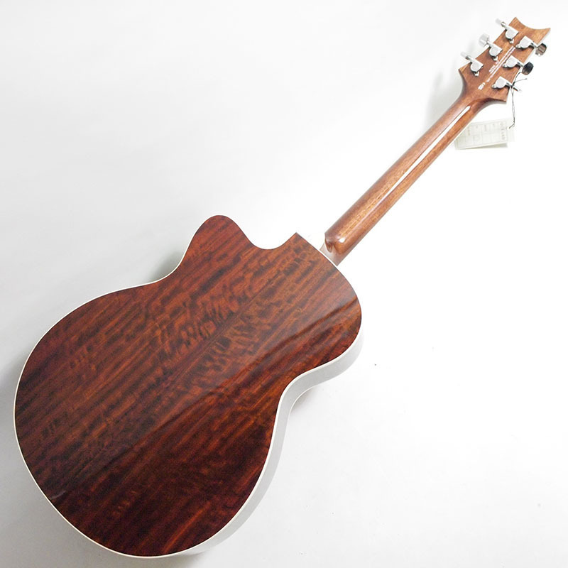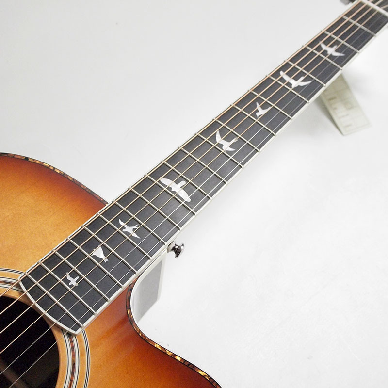 スプルース単板トップのほかにも、エボニー指板とブリッジ、ボーン・ナットとサドル、そしてバード・インレイとPRSヘッドストックなども、このギターのクオリティの高さを物語っています。