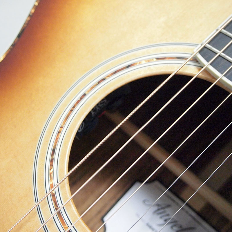 ピックアップはサドルの下に、プリアンプはサウンドホールの内側にそれぞれマウントされ、簡単にボリュームやトーンを調節できます。
