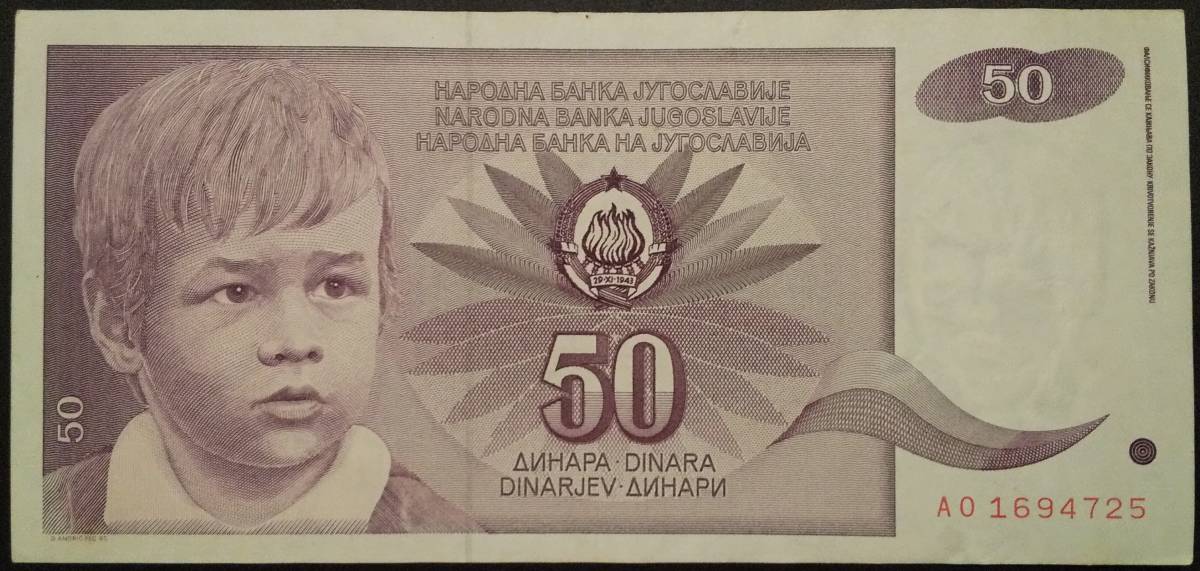 (B-916) ユーゴスラビア 50ディナーラ紙幣