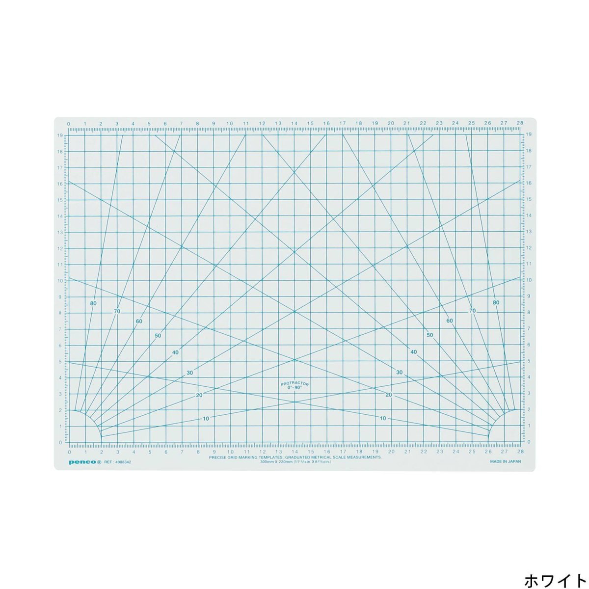 表面には方眼や放射状に広がる線のデザイン(ガイドライン)がプリントされています。