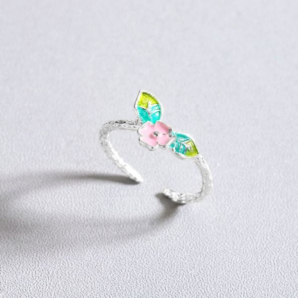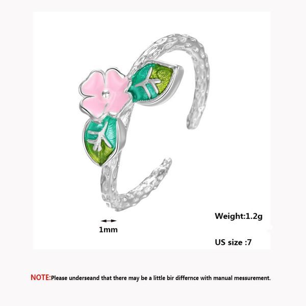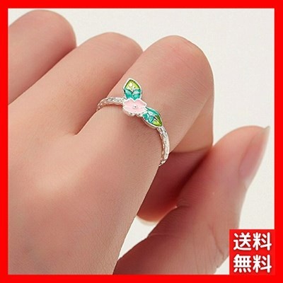 リング 指輪 シルバー ピンク フラワー 桜 花 葉 オープン フリーサイズ レディース 韓国 変更可能 バレンタイン ギフト 宝石 #C674-1