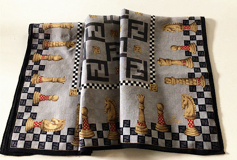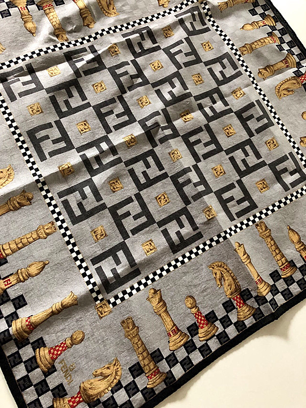 フェンディFENDI超【レア柄】ズッカ&馬頭柄大判ハンカチミニスカーフ膝掛け(C12