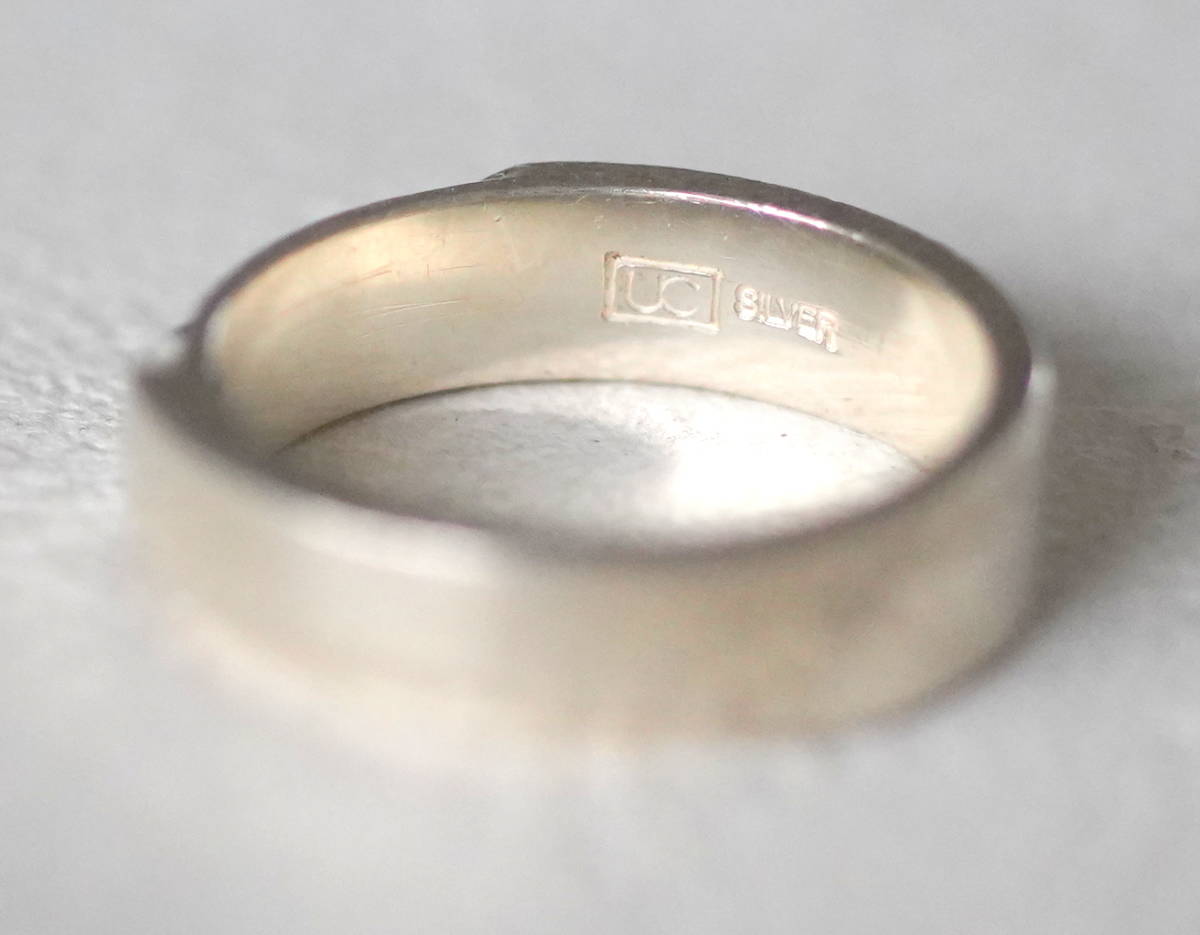 UC ユニオンクラフト シルバー925製 一粒ジルコニアとウェーブライン入りリング 約11号