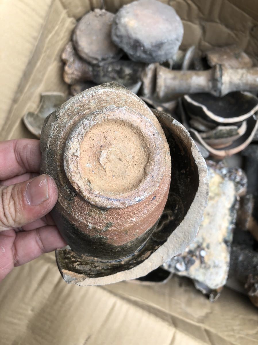 コレクター委託 古唐津 天神の森 出土 茶碗 敷板 トチン まとめて 黒唐津