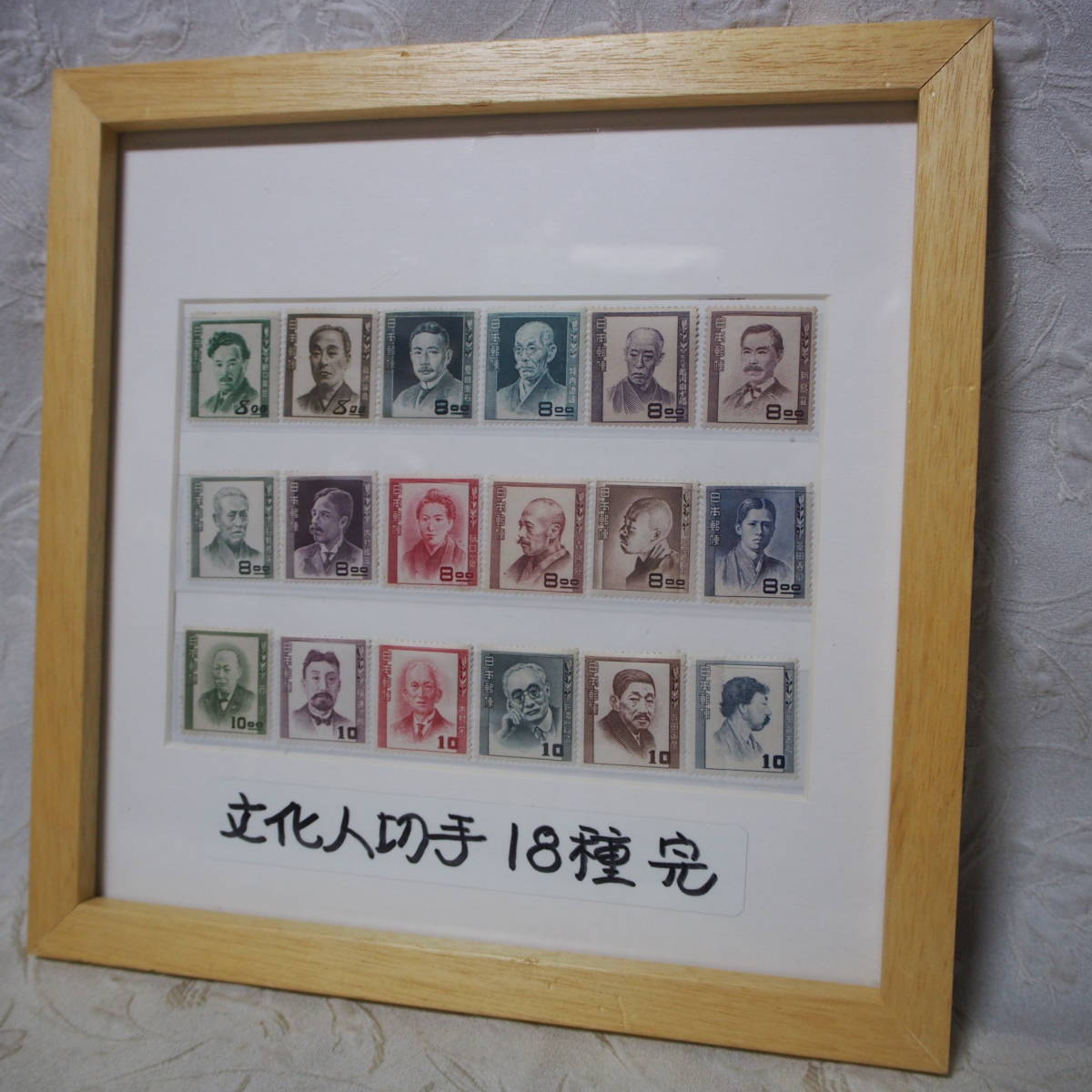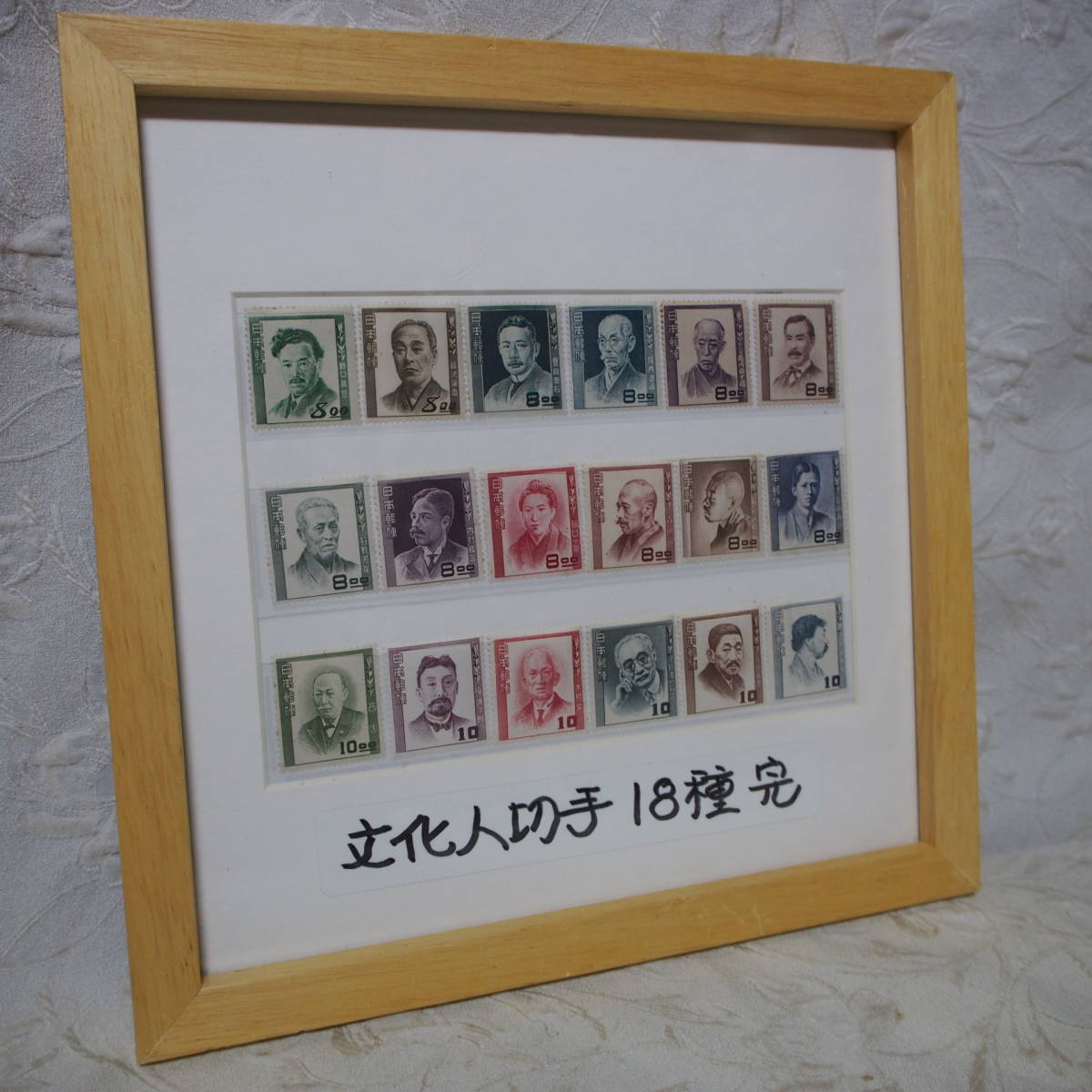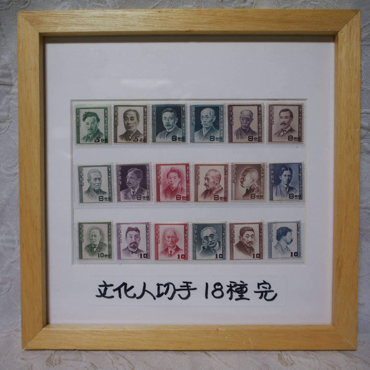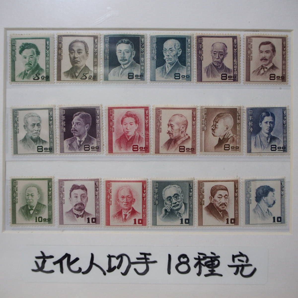 額入り・インテリア アート !! 状態良好 未使用品「文化人切手 18種完」 ーー 特別出品 ーー