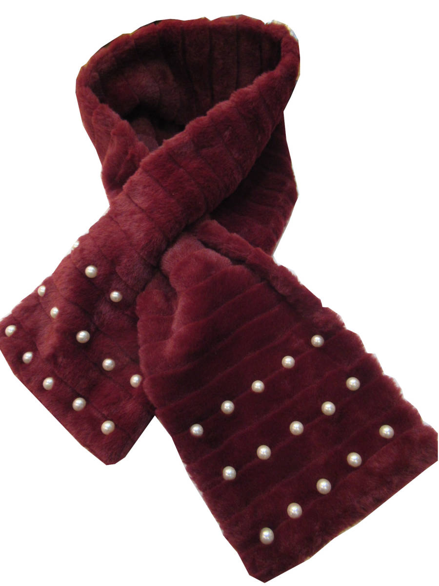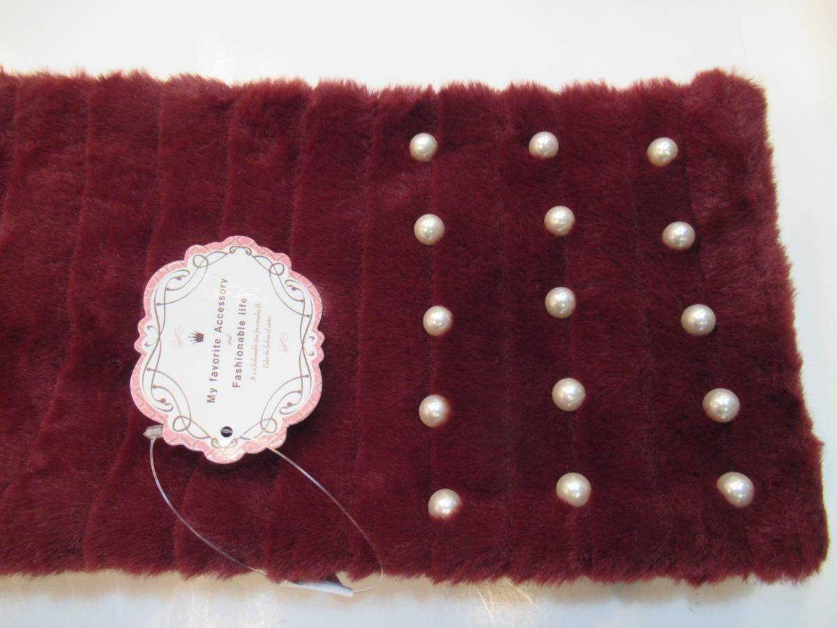 レディースマフラー ふわふわパール付きファーマフラー サービス品 エンジ★★