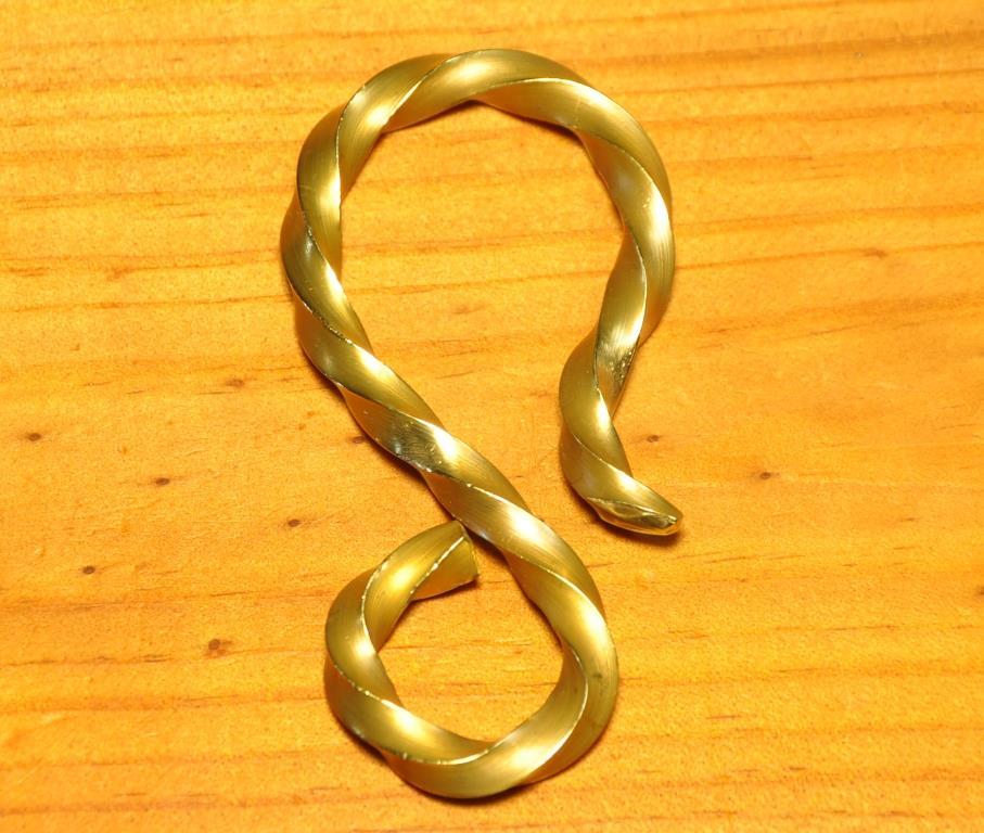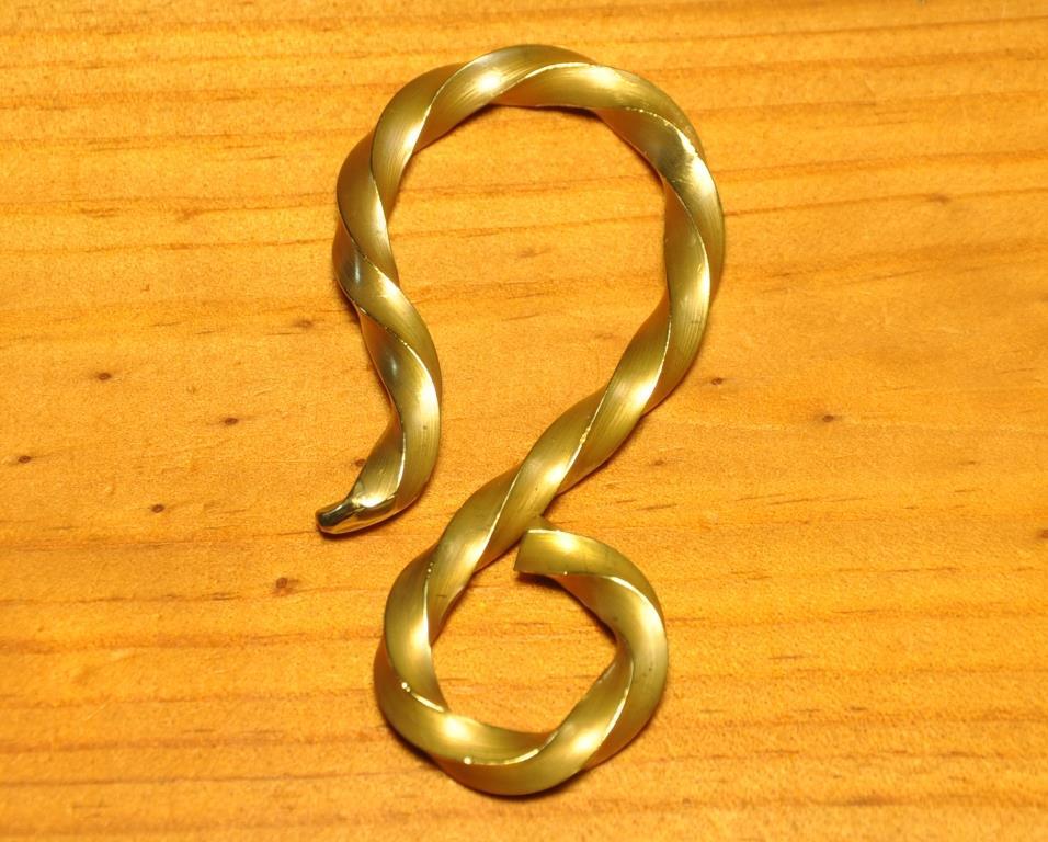 ハンドメイド 手作り Brass ソリッド ブラス 真鍮 ツイスト ネジリ ねじり フック キーホルダー パーツ S字フック 4mm角 一点物 G