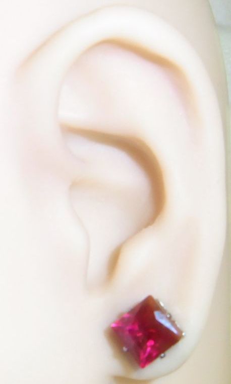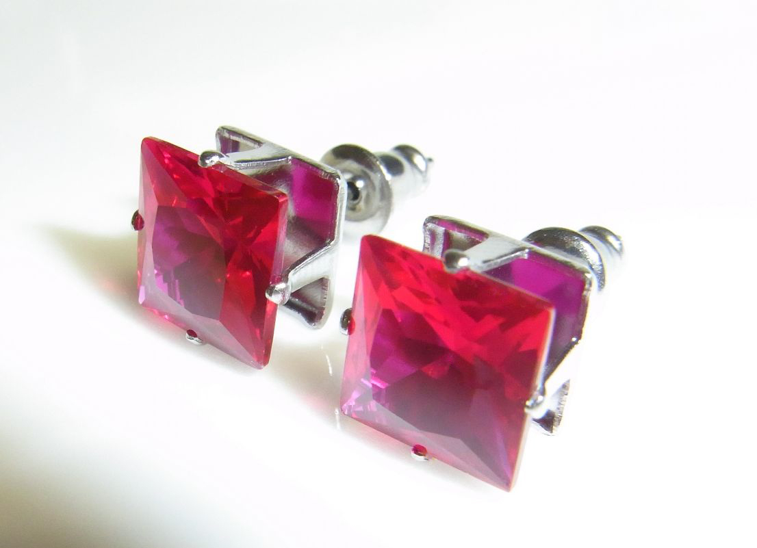 ★新品 6ct 大粒8ミリ ルビー ピアス プリンセスカット ステンレス製☆ | |||
