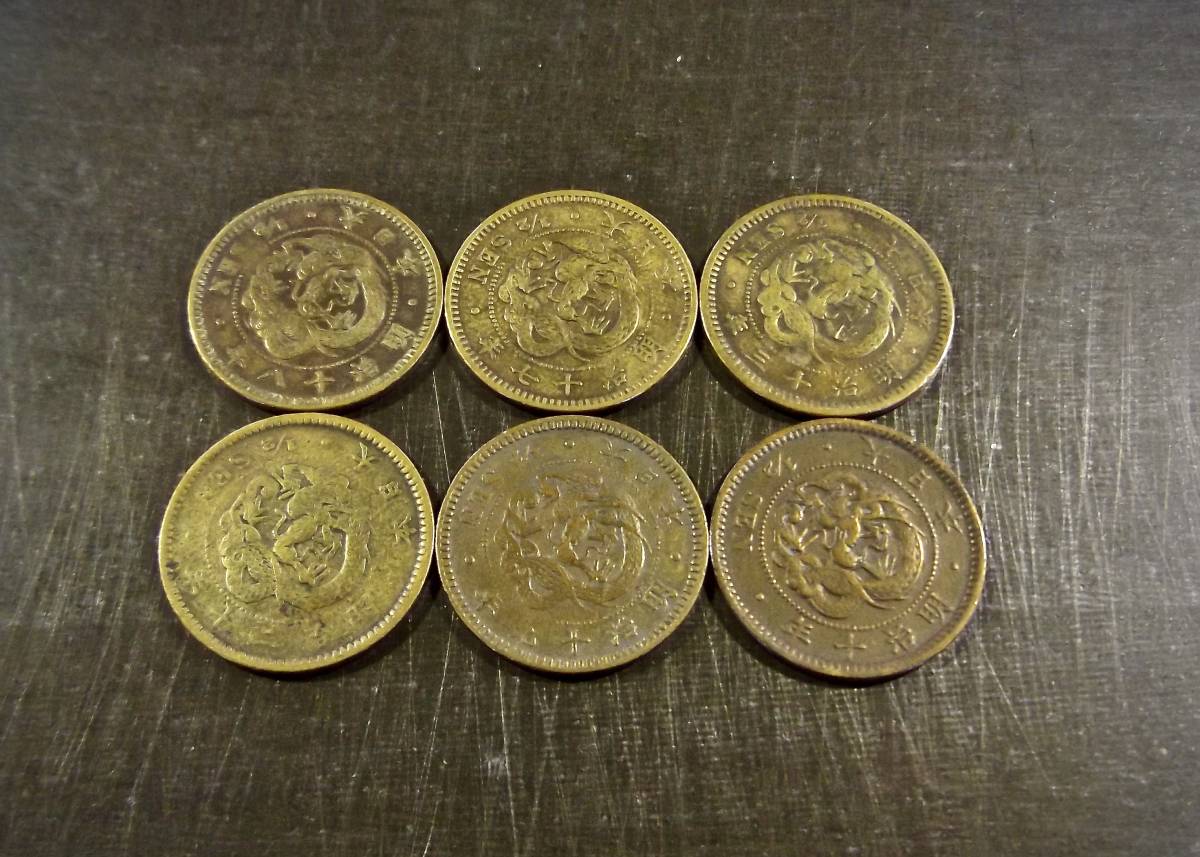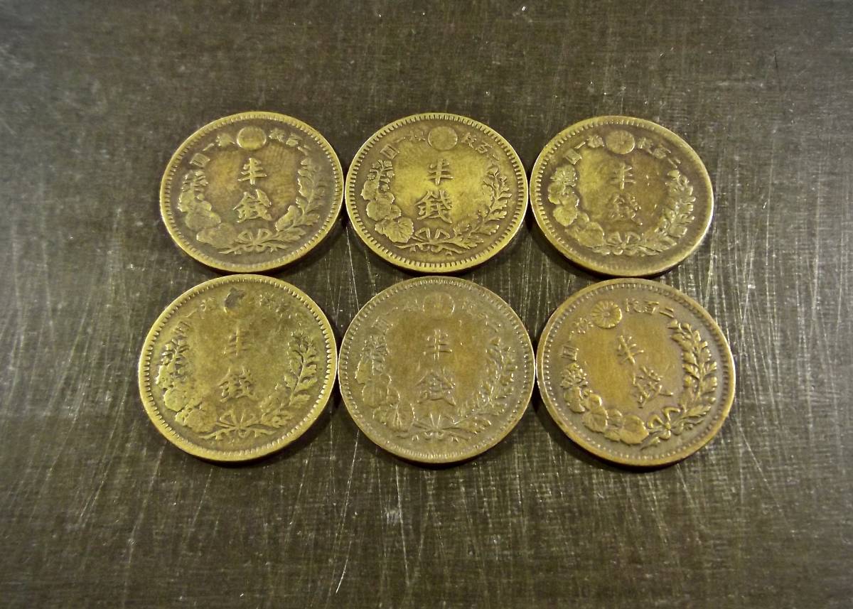 半銭胴貨 6枚セット 送料無料(12843)  古銭 骨董 アンティーク 日本 貨幣 菊の紋章 お宝