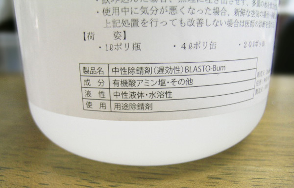 中性除錆剤 BLASTO-Bum 1Lです。