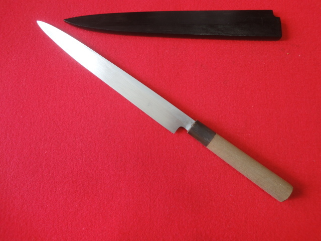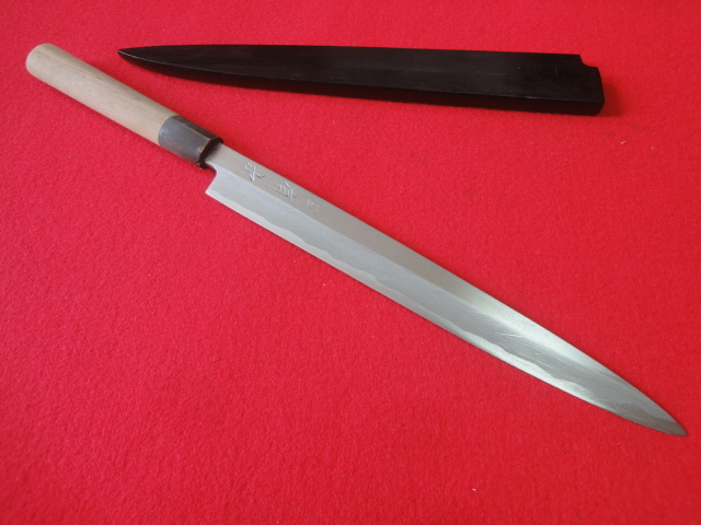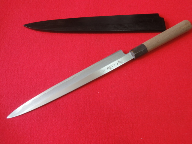 【有次】刺身包丁 刃渡26㎝ 全長41.3㎝ 峰厚4.1㎜ ※鞘付 ※片刃 中古品 全国一律送料1100円