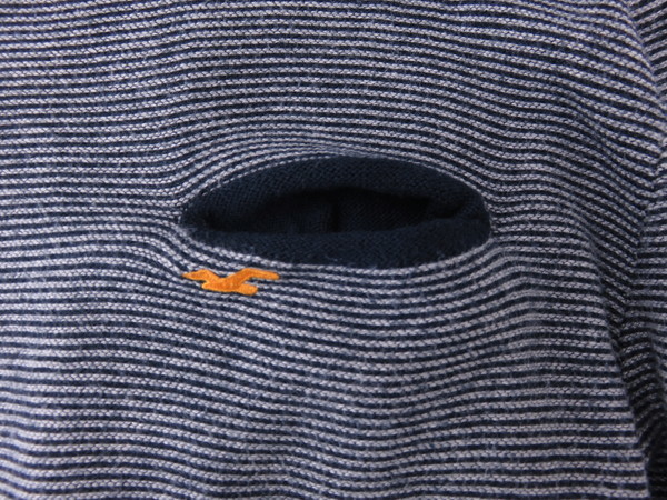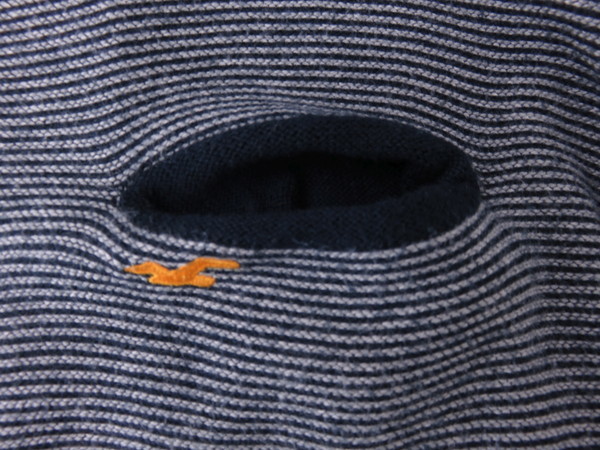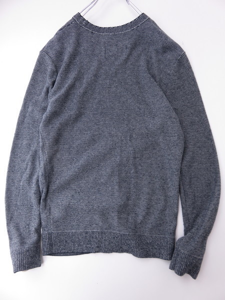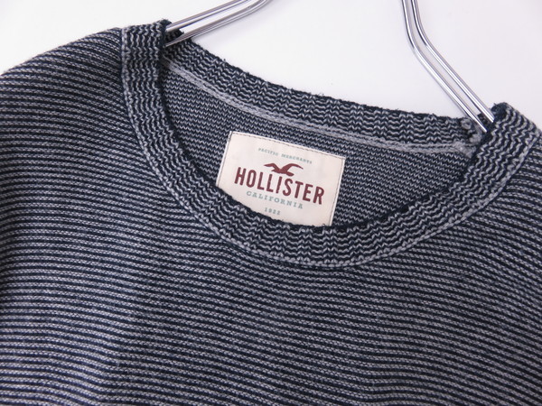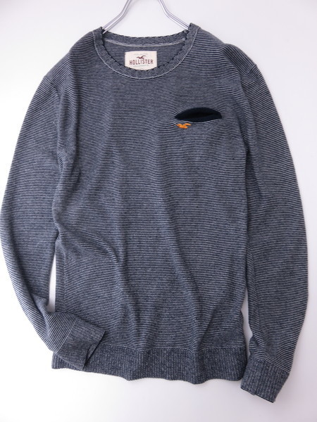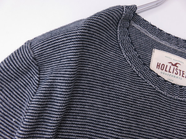 【送料無料】ホリスター HOLLISTER ニット長袖カットソー ロゴ刺繍 紺 ライトグレー M相当