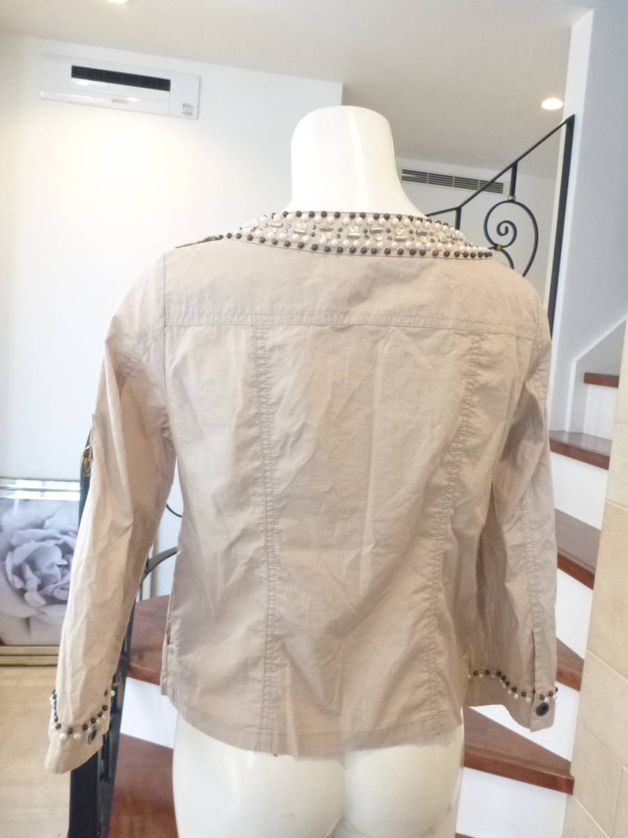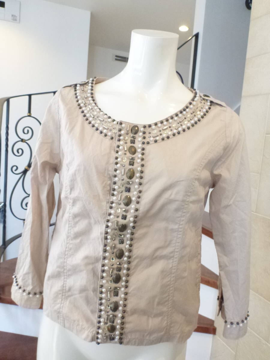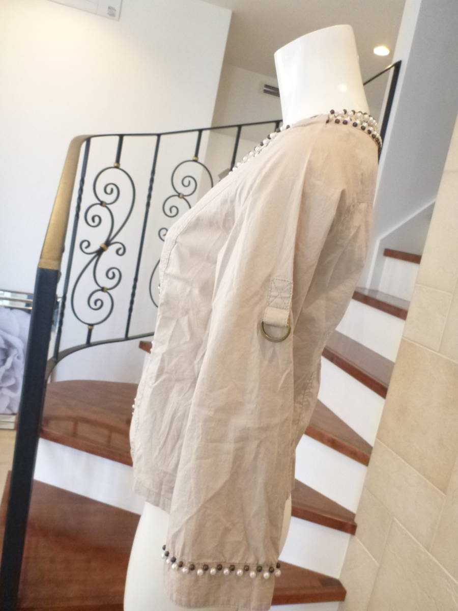 1.3万 Cynical シニカル ★ベージュ ビジュー ノーカラー シャツ ジャケット 袖ロールアップ可能