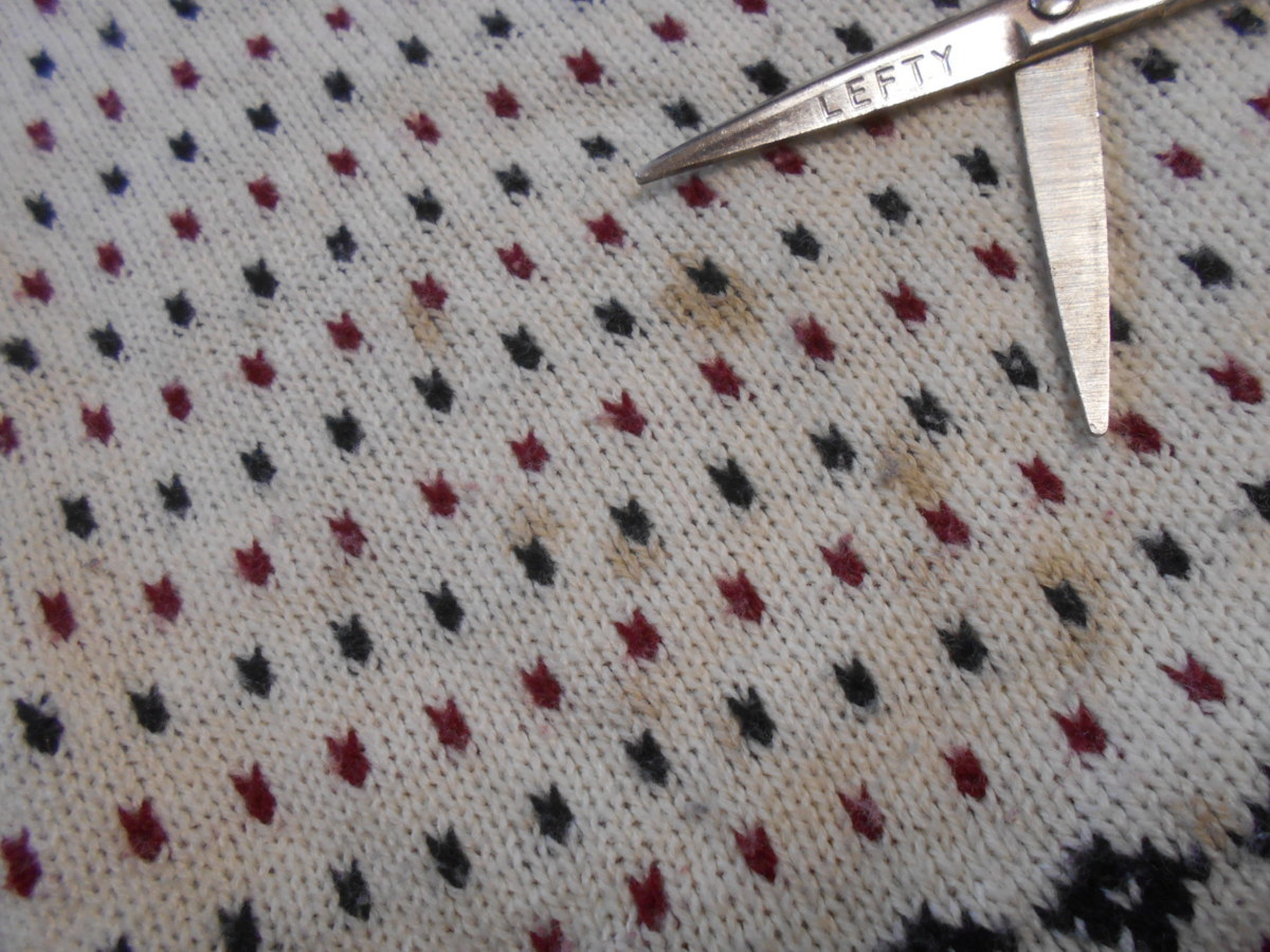 袖、お腹、胸に汚れ